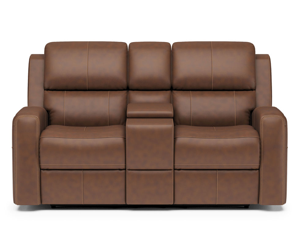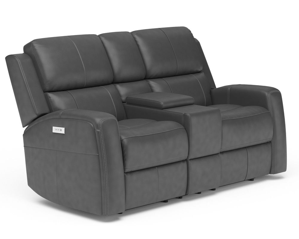 Enjoy seating designed to enhance your well-being with the Linden Power Loveseat with Power Headrest and Lumbar. Achieve a feeling of weightlessness while reclining with the loveseat's Zero Gravity technology that reduces pressure on the spine. Our patented Flexsteel DualFlex Spring System™ ensures a mix of flexibility and firmness as you sit, while ergonomic elements including plush, divided back cushions keep your neck and back comfortable. Both users can independently adjust the headrest, recline and lumbar with a convenient power control in either arm, making it easy to recline while watching your favorite shows. Linden offers a high back that supplies an abundance of comfort. A USB port in the power control makes it easy to keep devices charged, while thoughtful details, including cross-stitching and buried welt trim, give the loveseat an elevated look. Linden is upholstered in premium semi-aniline leather upholstery that will stay beautiful for years to come.