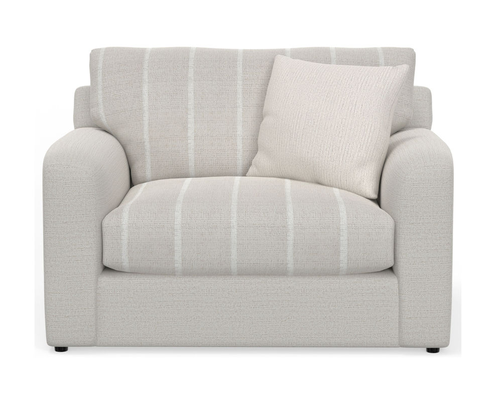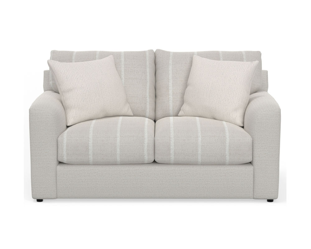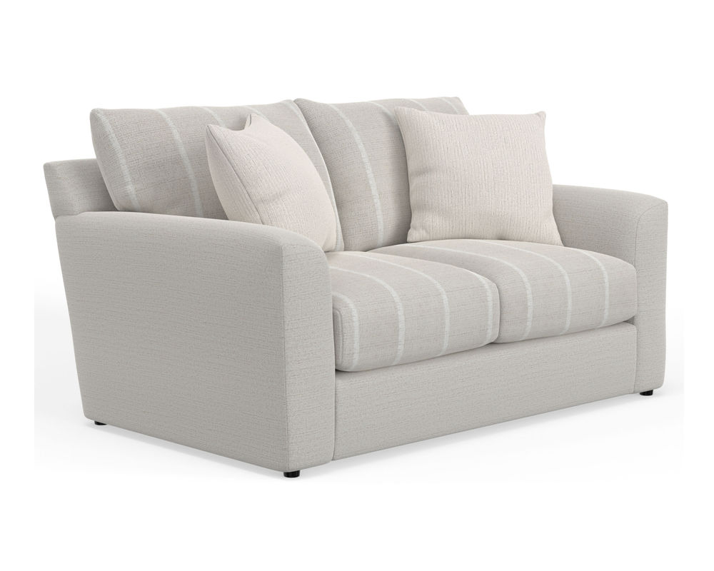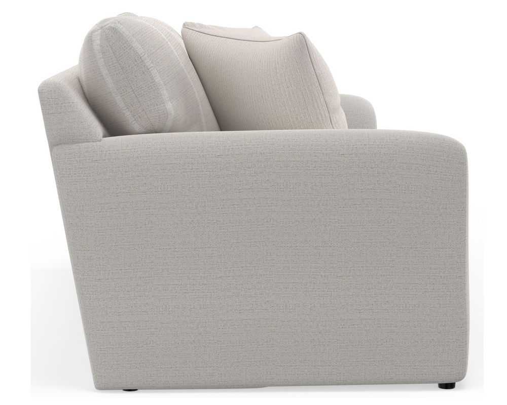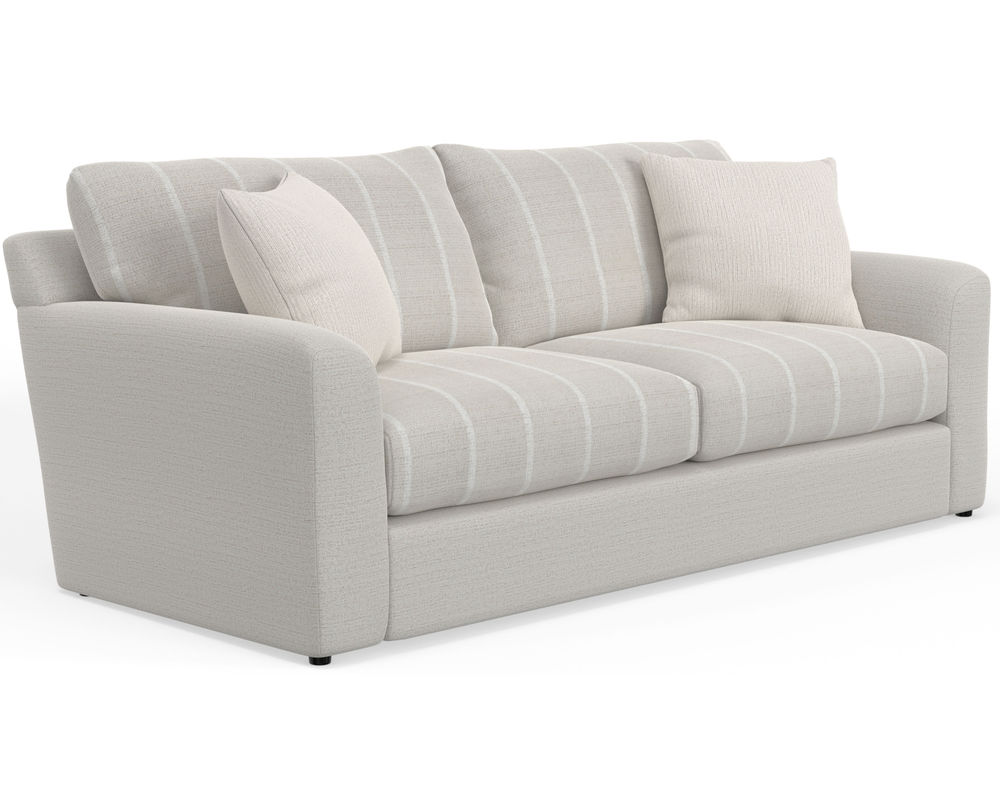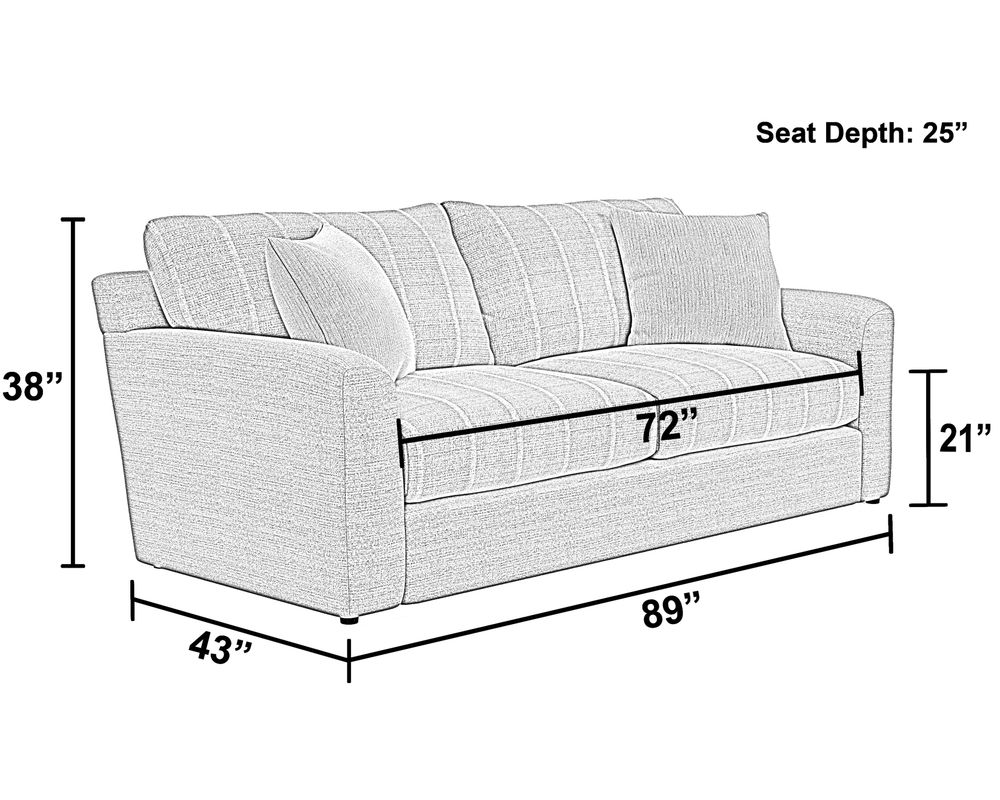 The stunning Lindsey 2288 Sofa is the perfect addition to any living space. With its warm and inviting design, this sofa will become your room's focal point. The slight curve of its track arms adds a modern touch, while the vertical white stripe on the seat and back cushions creates a beautiful contrast.
