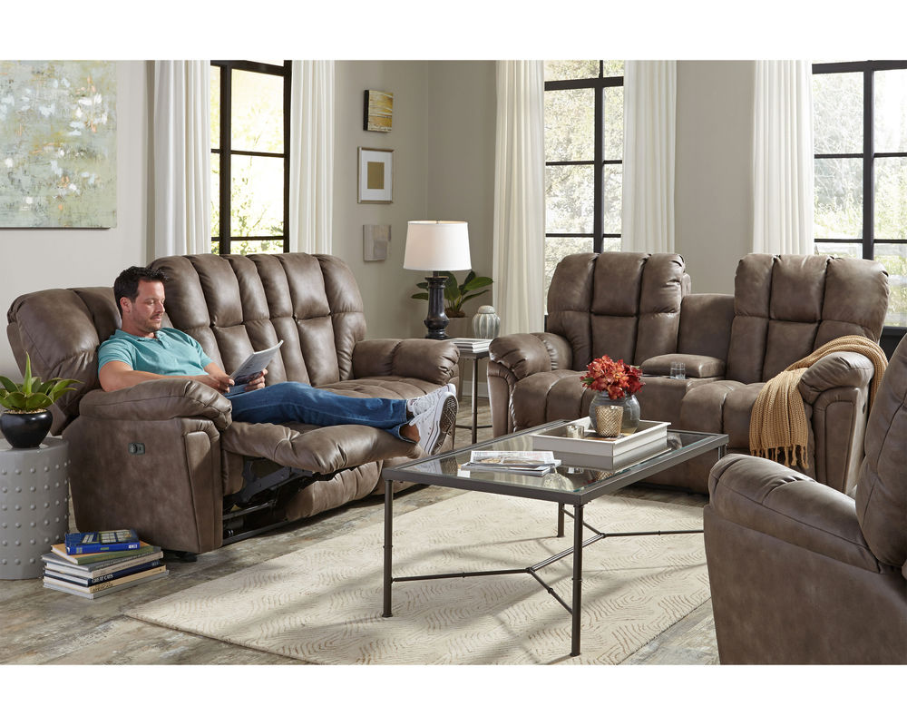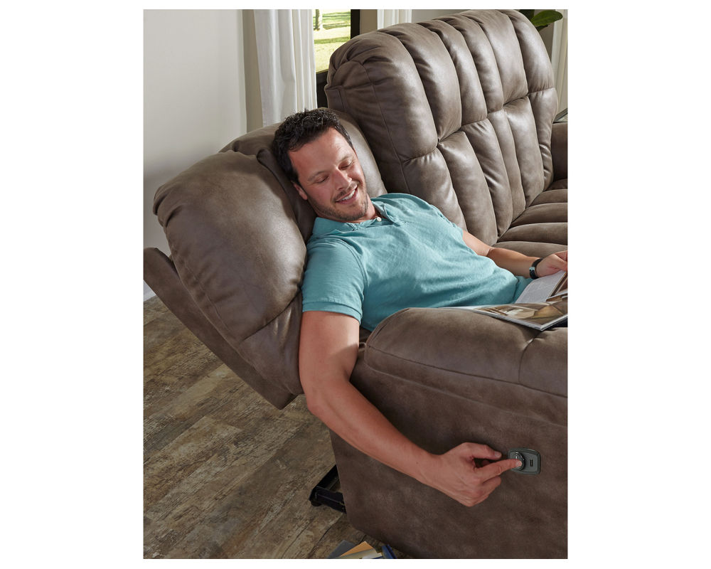 The Lucas S544 Reclining Console Loveseat is the perfect choice for comfort and convenience. Its overstuffed cushions on all sides envelop you to give you the feeling of a big bear hug. The loveseat is available with an easy-to-use outside reclining handle, or you can choose the convenience of Power and Power Tilt Headrest with a USB charging port. The console option features a small storage space with two cupholders, and you can also select either a soothing rocking motion or Space Saver for close-to-the-wall proximity.