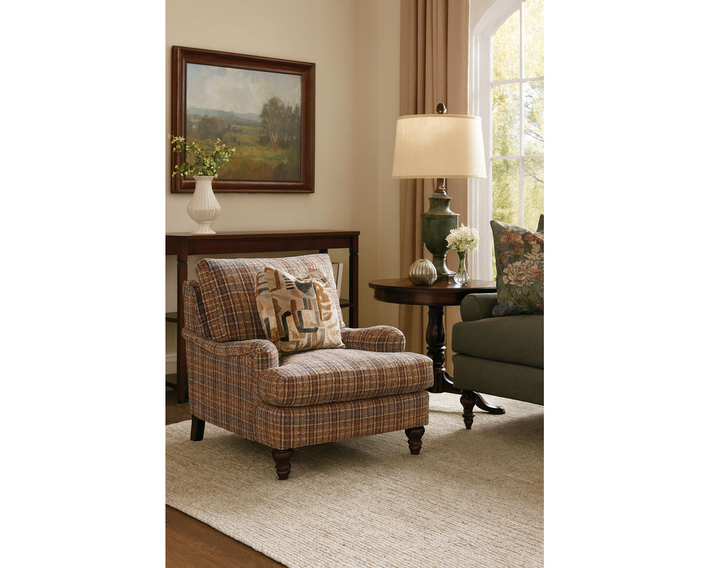 The Luna Chair brings the same elegance and comfort of the Luna collection into a perfectly sized seating option. Designed with graceful English arms and a traditional turned leg base, this chair exudes classic charm while remaining casual enough for everyday living.