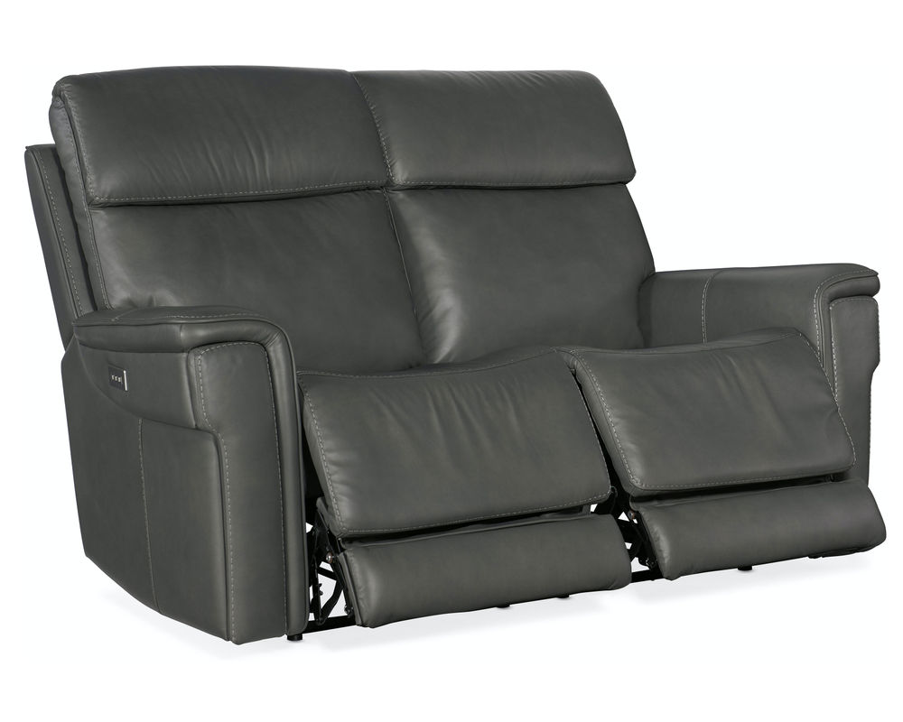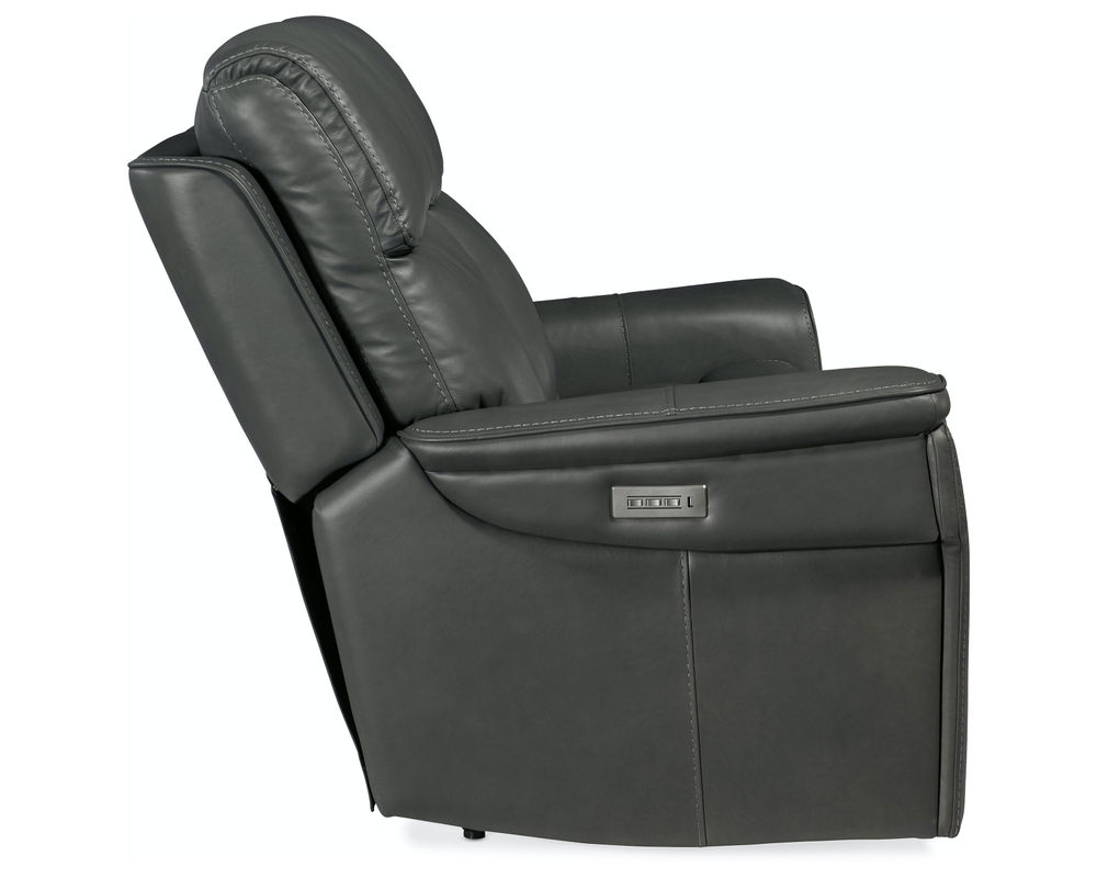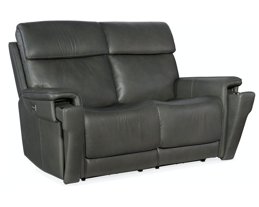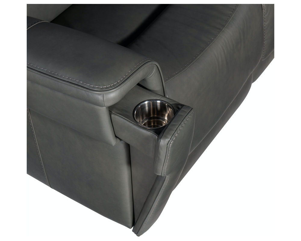 Finally, there’s a casual contemporary loveseat that’s stylish and tasteful. Featuring a bustle back and saddle-padded arms, the Lyra Zero Gravity Power Loveseat with power headrest is generously scaled with clean lines and top-stitch detailing. Lyra also offers adjustable lumbar support, a USB port and pop-out arm panel with a metal cupholder, and is covered in the Sahara Gray semi-aniline top-grain leather.