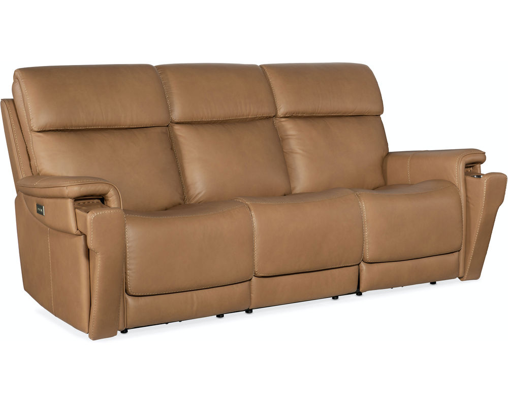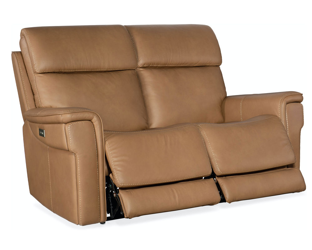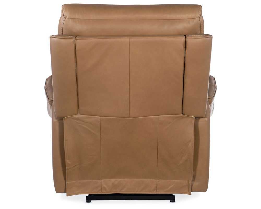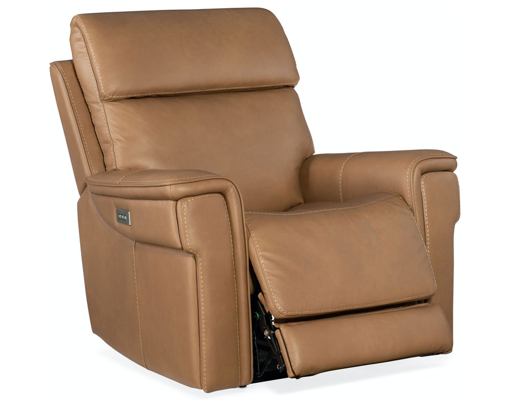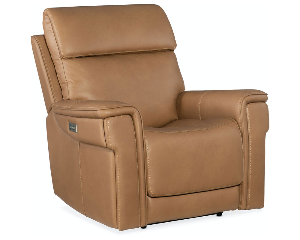 Finally, there’s a casual contemporary recliner that’s stylish and tasteful. Featuring a bustle back and saddle-padded arms, the Lyra Zero Gravity Power Recliner with power headrest is generously scaled with clean lines and top-stitch detailing. Lyra also offers adjustable lumbar support, a USB port and pop-out arm panel with a metal cupholder, and is covered in the Sahara Sandalwood semi-aniline top-grain leather.