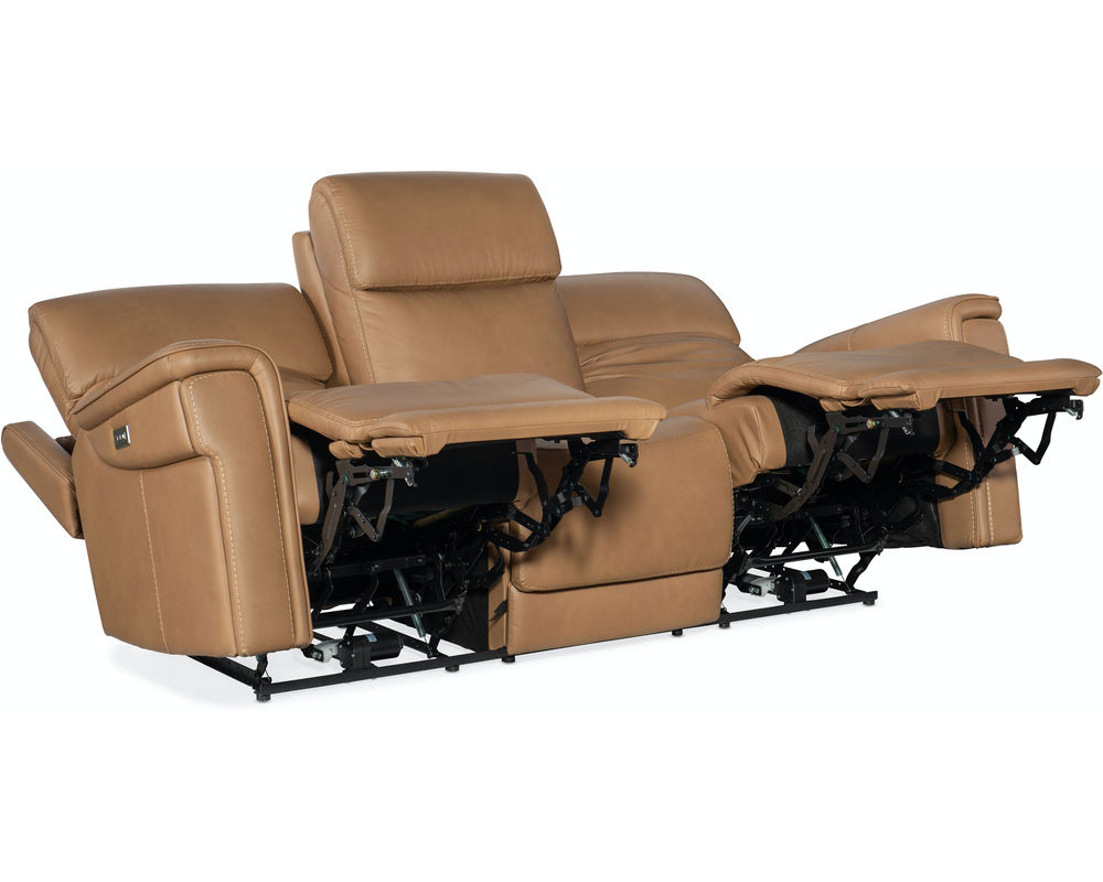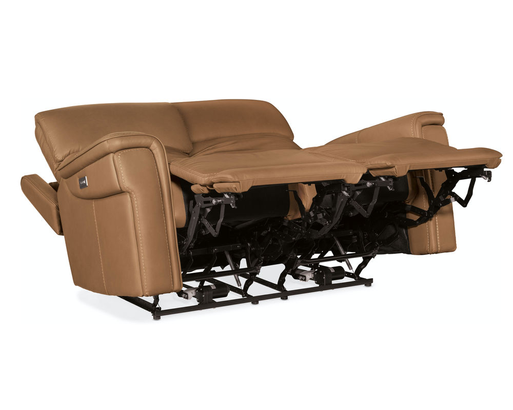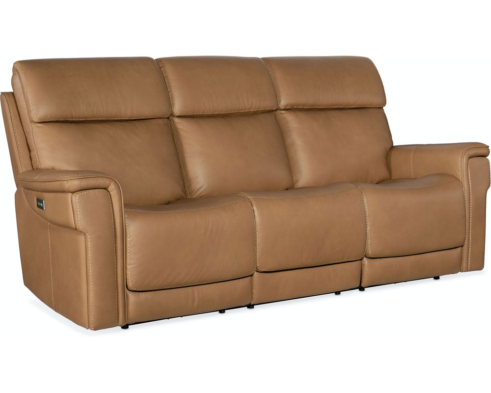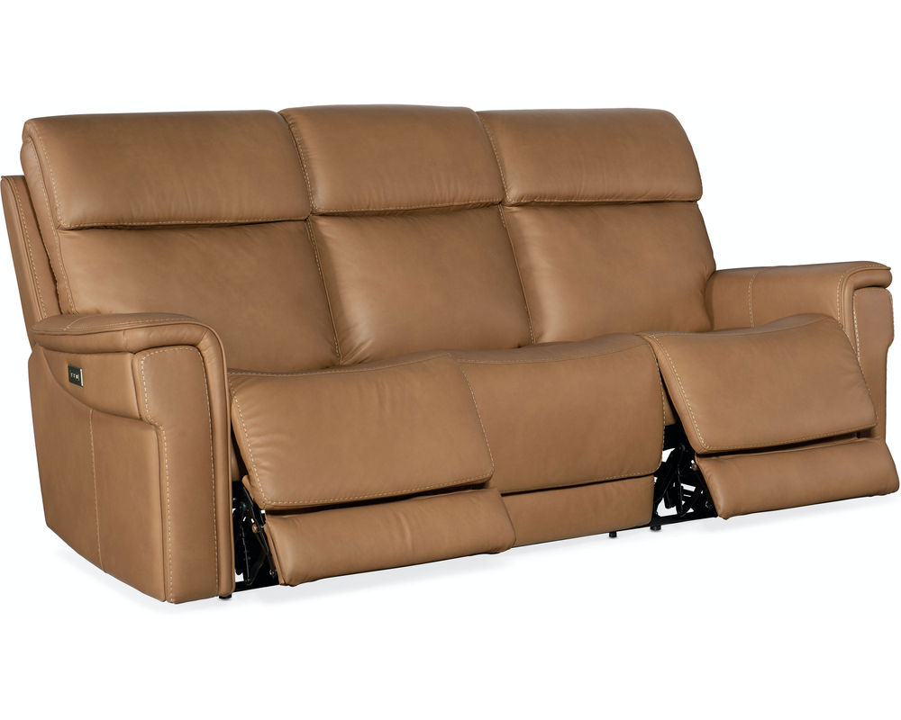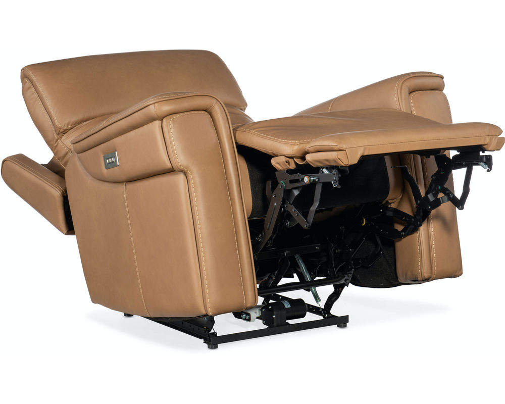 Finally, there’s a casual contemporary recliner that’s stylish and tasteful. Featuring a bustle back and saddle-padded arms, the Lyra Zero Gravity Power Recliner with power headrest is generously scaled with clean lines and top-stitch detailing. Lyra also offers adjustable lumbar support, a USB port and pop-out arm panel with a metal cupholder, and is covered in the Sahara Sandalwood semi-aniline top-grain leather.