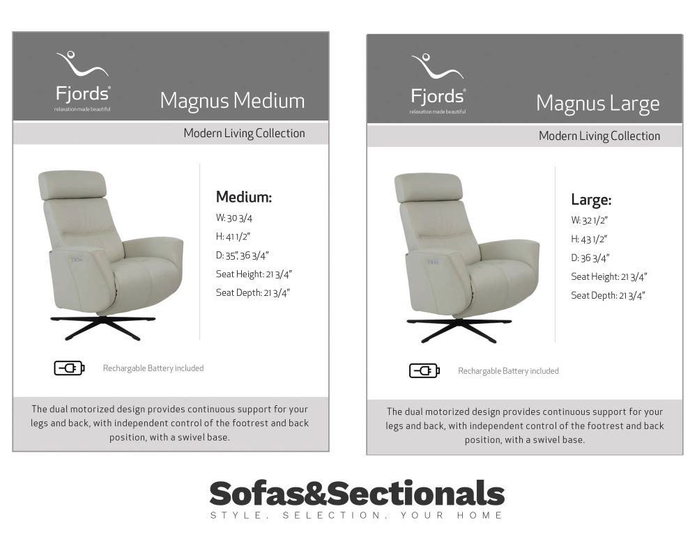 Its cordless design offers complete freedom of placement, allowing you to position the recliner anywhere in your space without visible cords or nearby outlets. An adjustable headrest pillow and power headrest provide personalized neck and head support, while premium cushioning ensures lasting comfort. Available in two sizes and a wide range of luxurious leathers, the Magnus combines innovative functionality with refined style for a truly elevated seating experience.