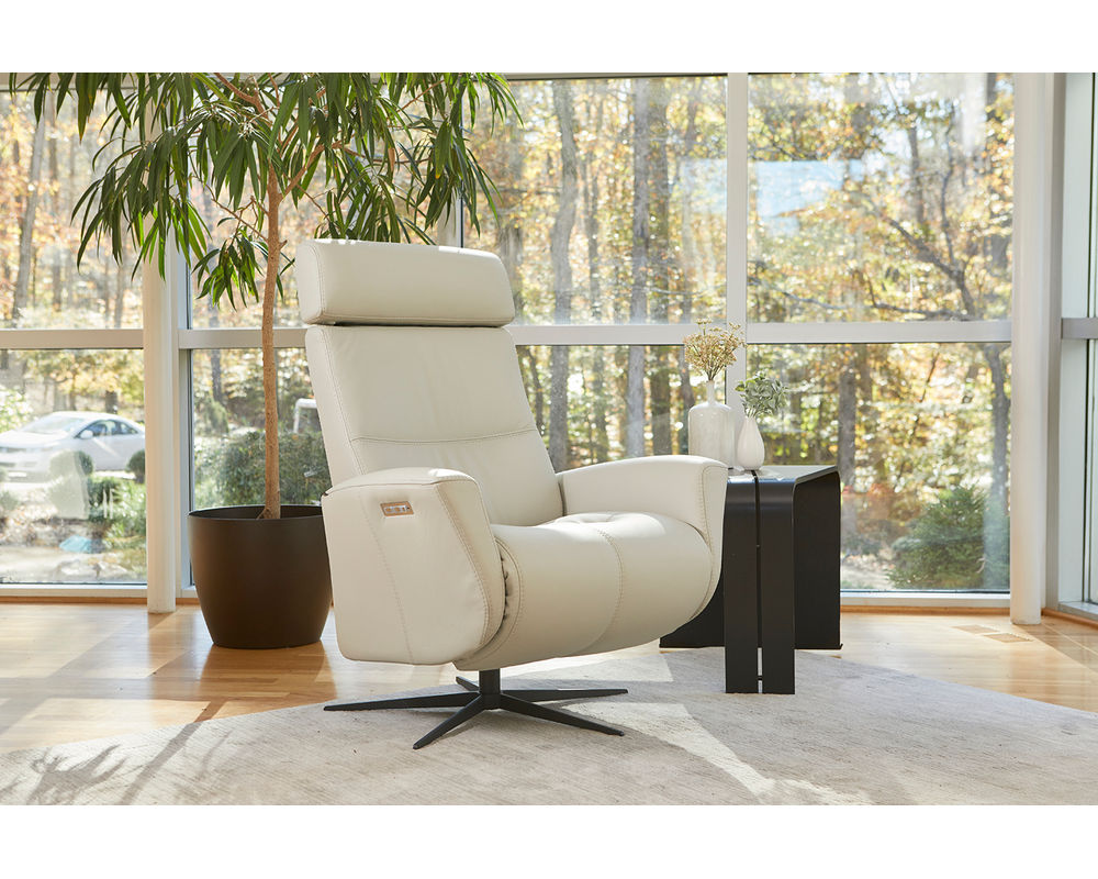 Experience the ultimate in contemporary design and unparalleled comfort with the Magnus Cordless Power Leather Recliner. This top-of-the-line recliner is designed with dual motorized functionality, allowing continuous support for your legs and back. You'll have independent control over the footrest and back position and the ability to swivel the base for added convenience.