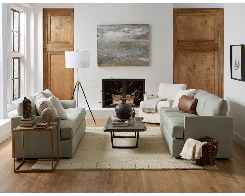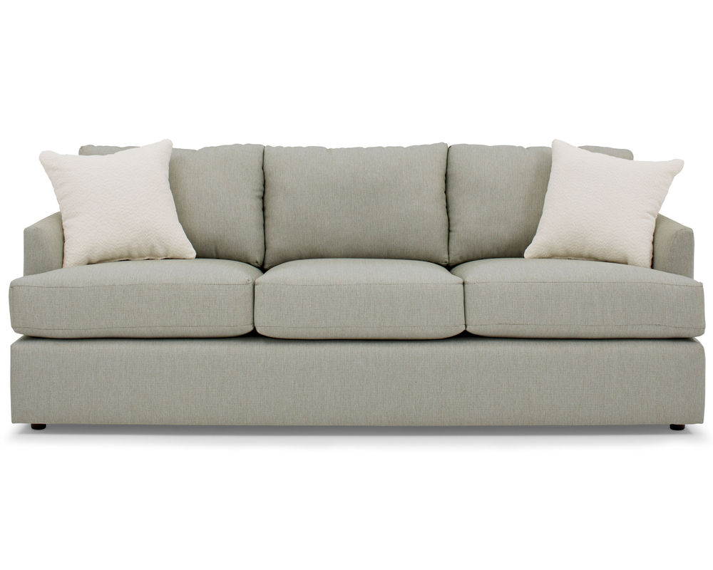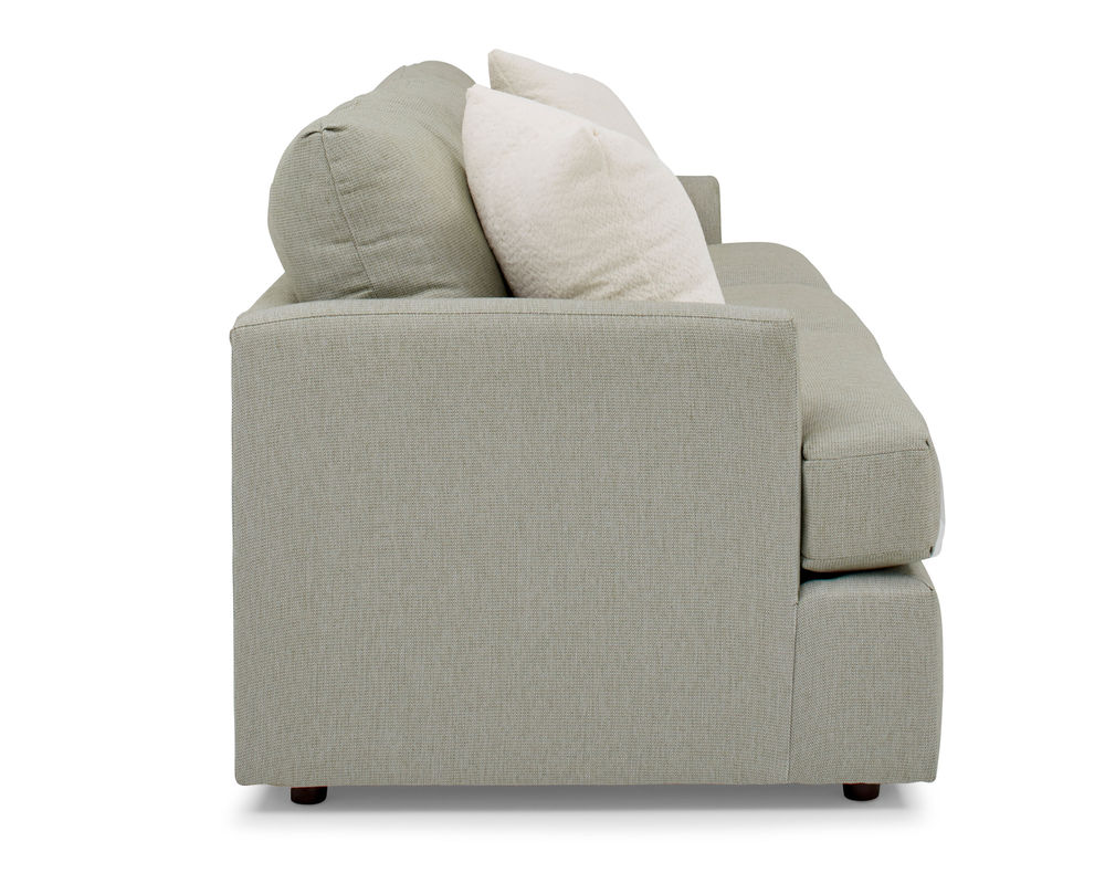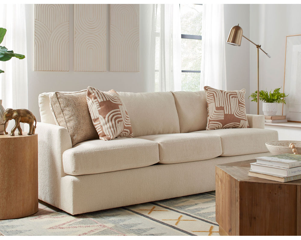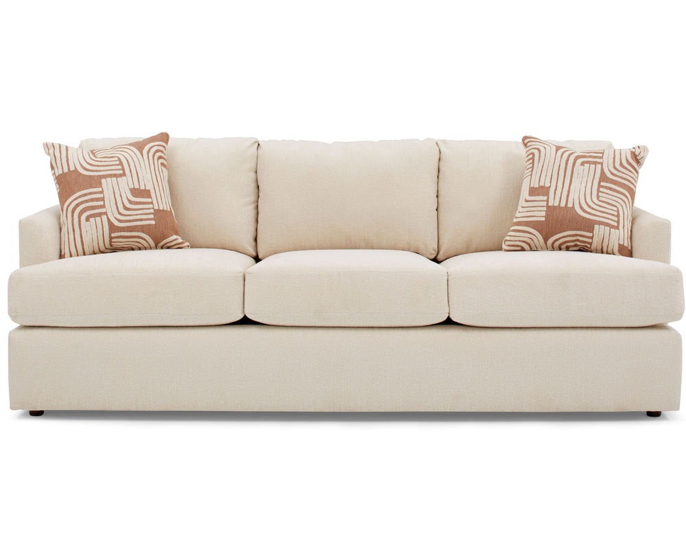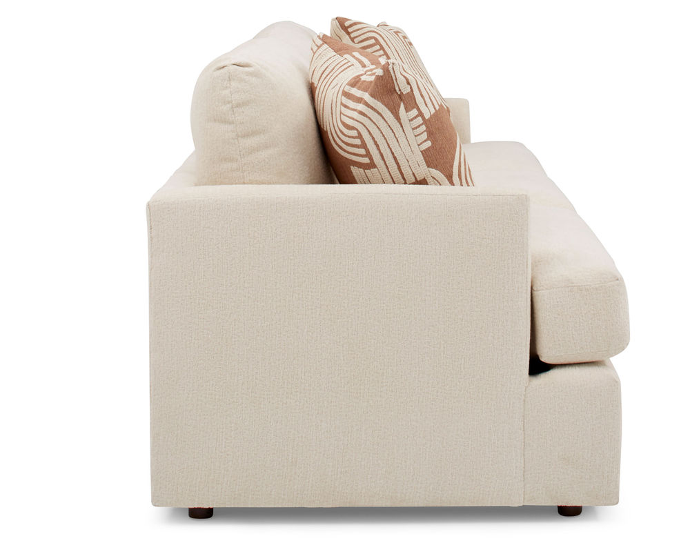 The Malanda S40 Sofa is the perfect blend of modern style and cozy comfort. This 85" silhouette features beveled arms and a solid foam, reversible T-cushion for a luxurious look and feel. The deep seats and pillow-back cushions provide an inviting and comfortable oasis, while the premium pillow fibers and bottom zipper access for fiber adjustment ensure your sofa will look and feel new for years to come. With over 100 fabric options, you can customize the Malanda to make a statement or blend in with your décor. Plus, two pillows are included in the fabric of your choice. Enjoy the ultimate in comfort and style with the Malanda S40 Sofa and complete your collection with the matching loveseat and chair. Experience the quality of USA craftsmanship with the Malanda S40 Sofa.