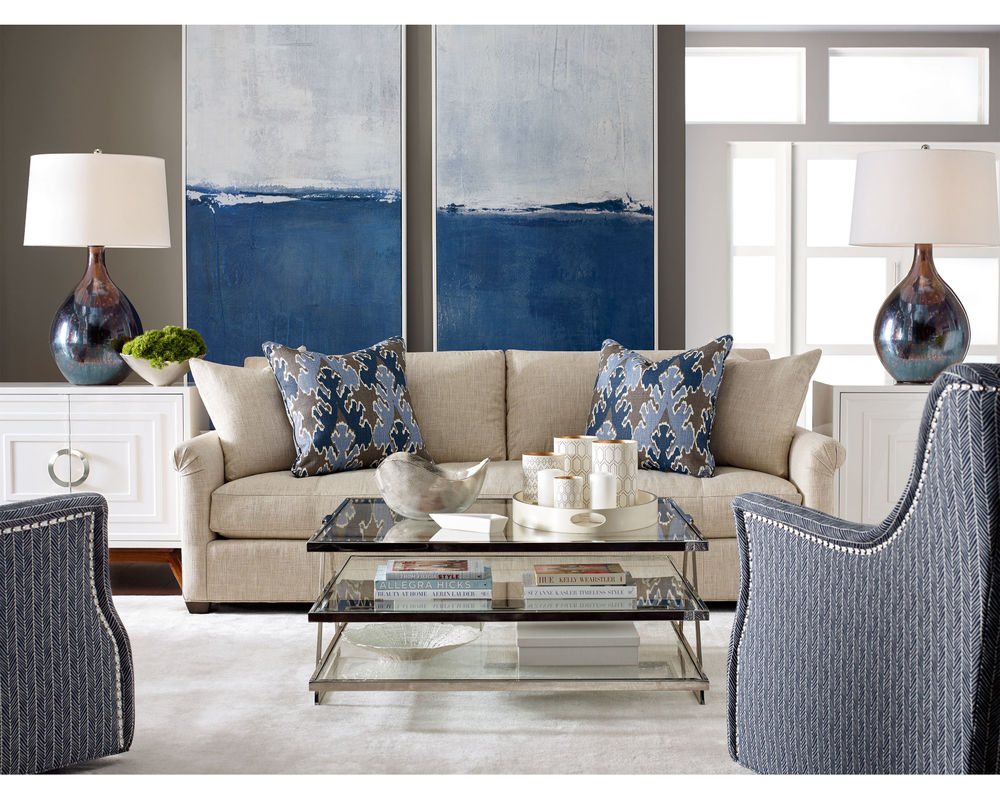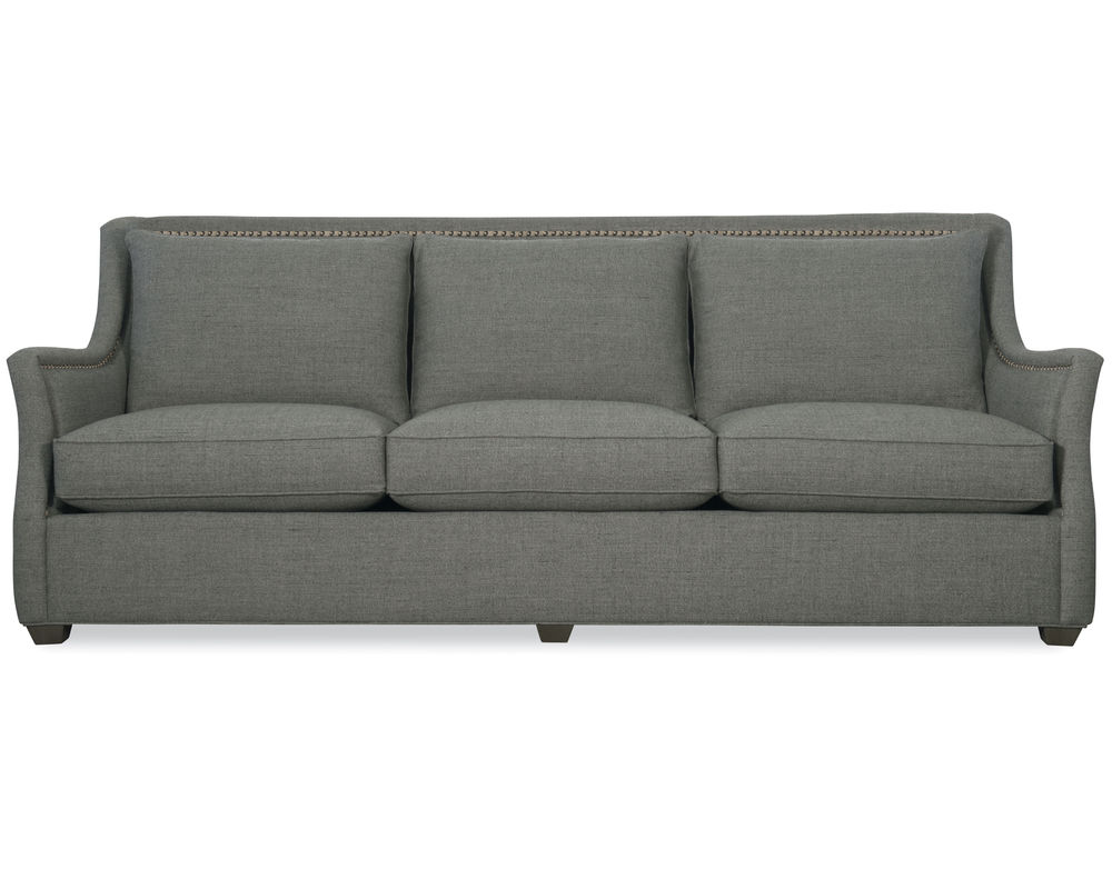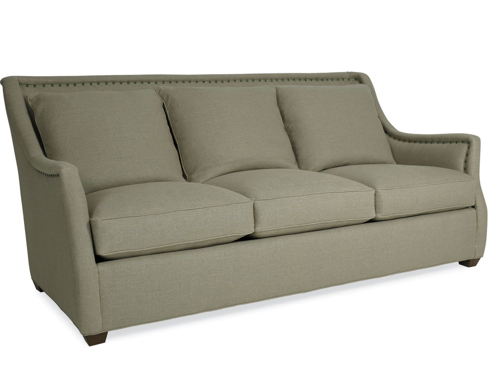 The Marcoux sofa also offers the option of adding nail head trim in seven colors.