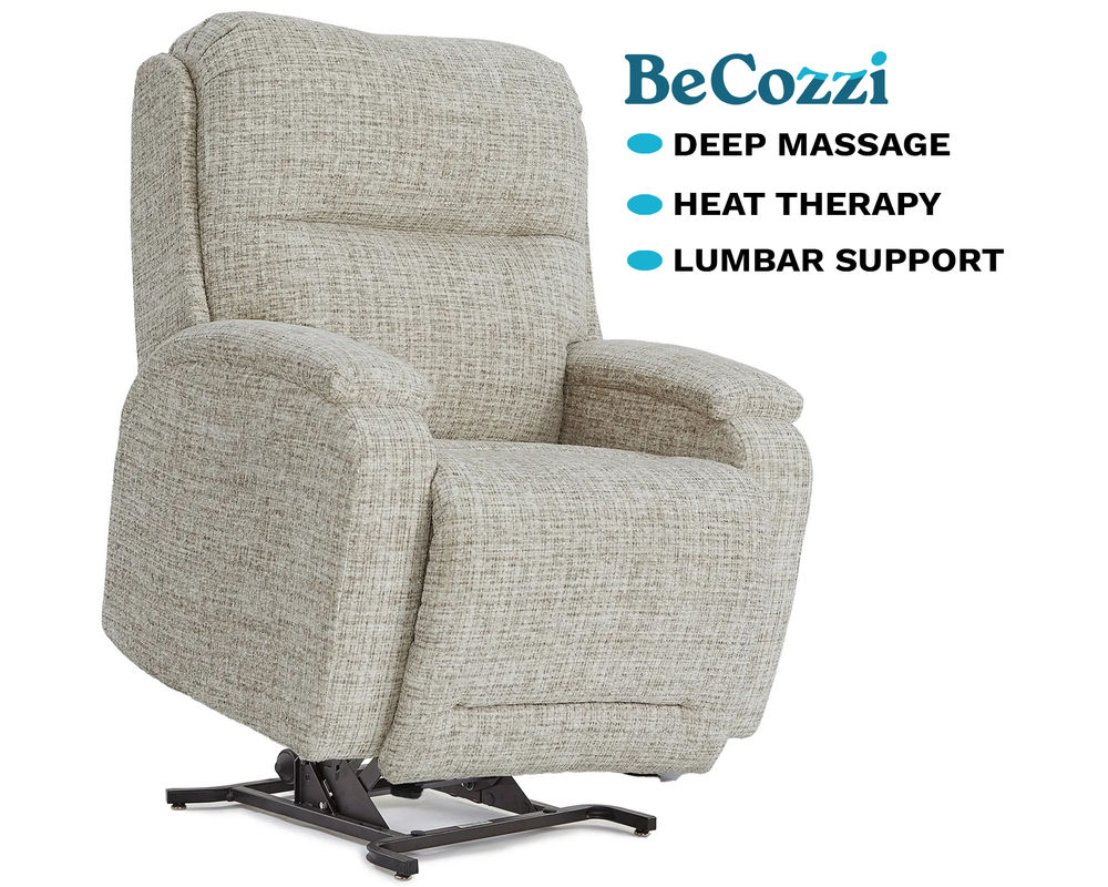 Choose from two deep tissue air massage modes to gently target key pressure points, stimulating relief and relaxation while you read, watch TV, or simply unwind. Add the soothing benefits of heat therapy, proven to improve circulation and reduce discomfort. With the adjustable lumbar feature, you’ll enjoy gentle spinal stretching to aid alignment, reduce strain, and improve posture. Equipped with triple power functionality—including power recline, power headrest, and power lumbar—plus the added security of a power lift mechanism, the Maverly BeCozzi makes every moment of rest or recovery a luxurious, supportive experience. Built strong to support up to 350 pounds.