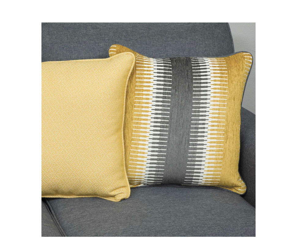 • Hardwood and Hardwood Plywood Frames are Corner Blocked for support • 8.5 Gauge No Sag Seat Springs • 1.8 Density Dacron Wrapped Cushions • Fiber Filled Backs and Pillows • Reversible Backs and Seat Cushions • Made in the USA • All 20” square and kidney pillows are included • All wood legs
