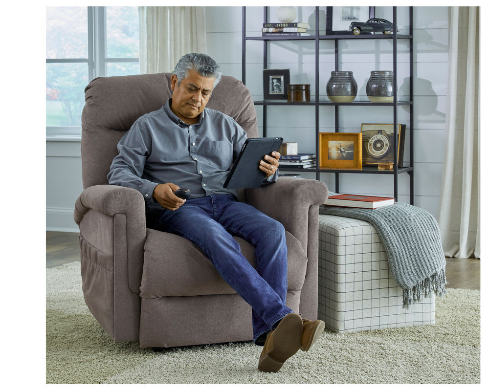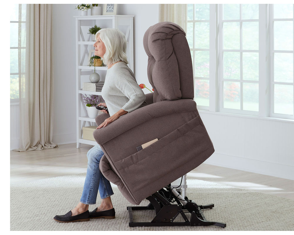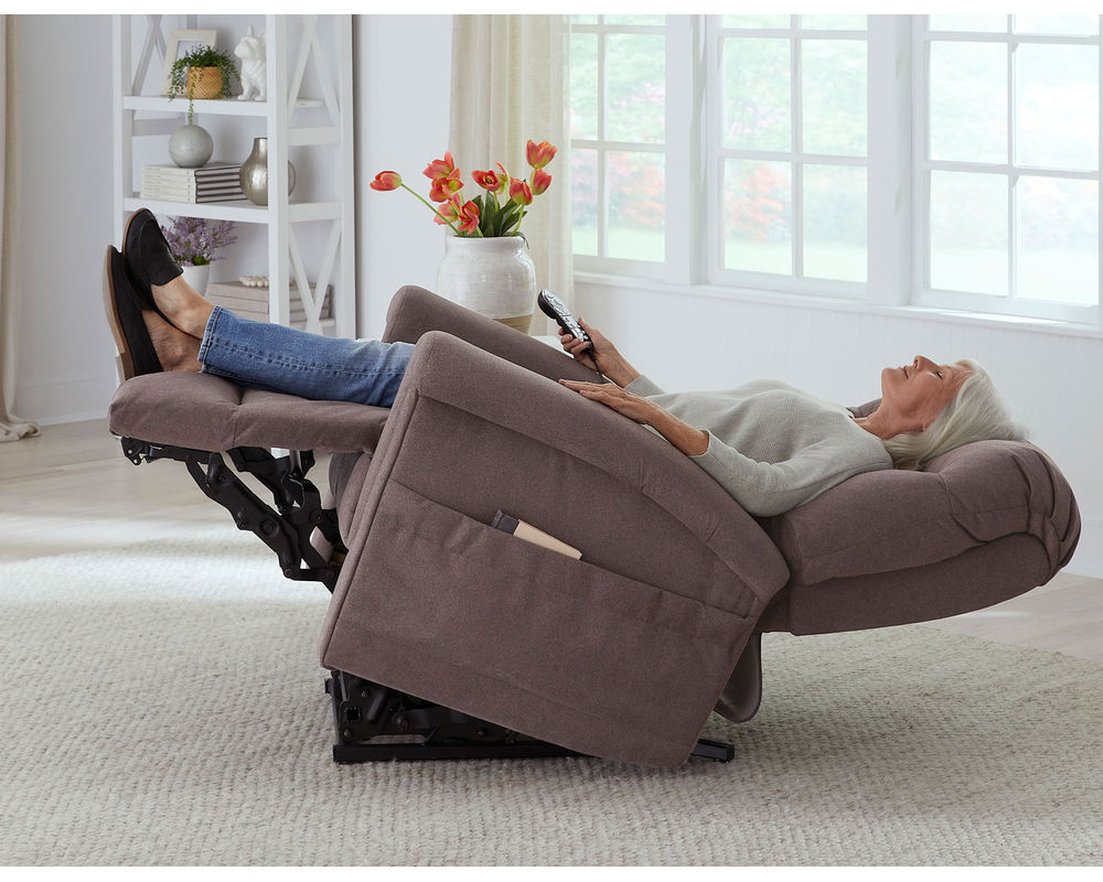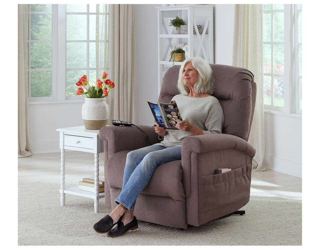 The Metis Lift Recliner features convenient side pockets for storage of remotes, magazines or electronic devices. The easy to use and ergonomic hand wand has a convenient USB port at the end.
