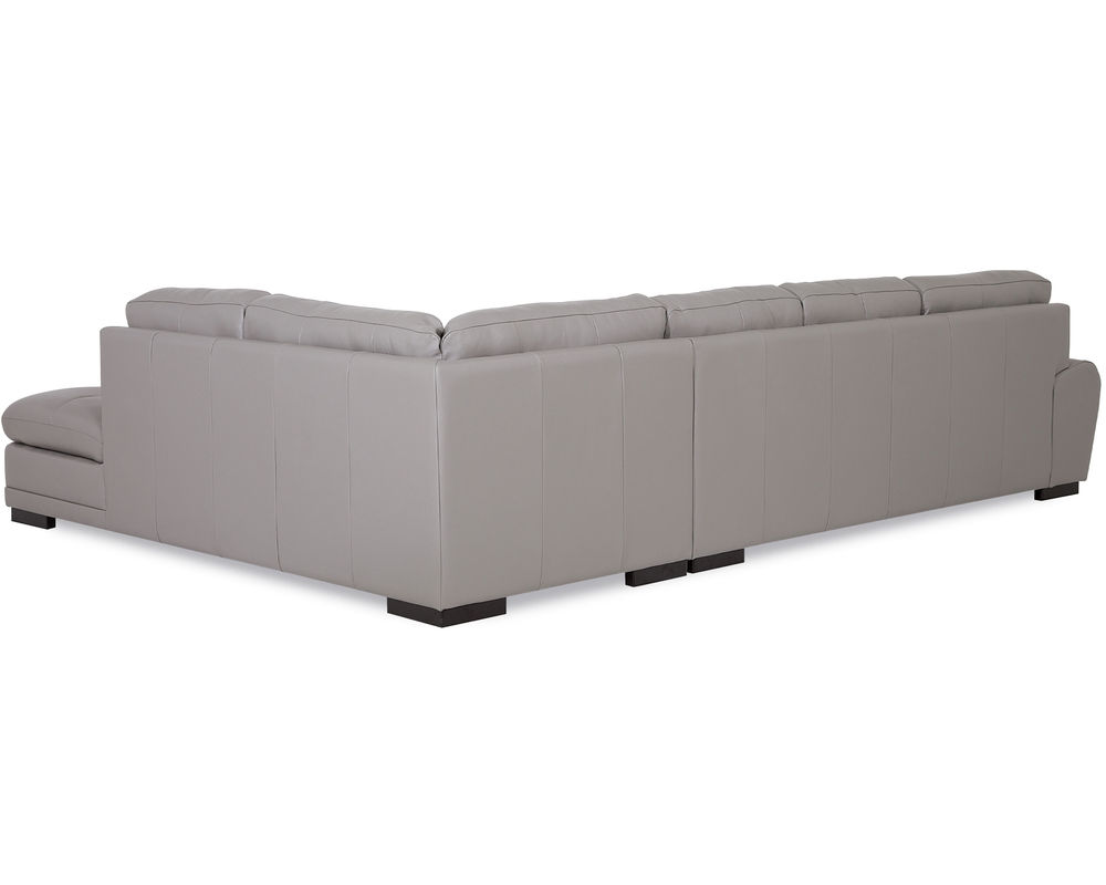 With its low-slung design and contemporary profile, this sectional effortlessly blends in with any interior style, from modern to traditional. The sleek and smooth leather covering adds a touch of luxury, making it a focal point of any room. Whether placed in the living room, family room, or entertainment space, this sectional will create a modern and inviting atmosphere, making it a versatile addition to your home.
