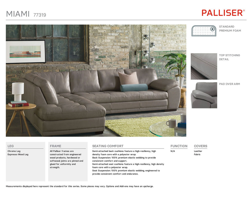 Beautiful well made sectional . We previously had a Palliser brand and know how well they are constructed , seats & cushions that don’t sag. Shipping was smooth ( even during pandemic) & we are very pleased .