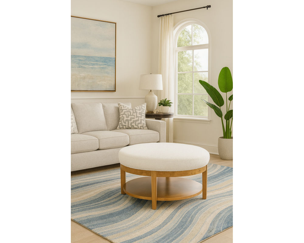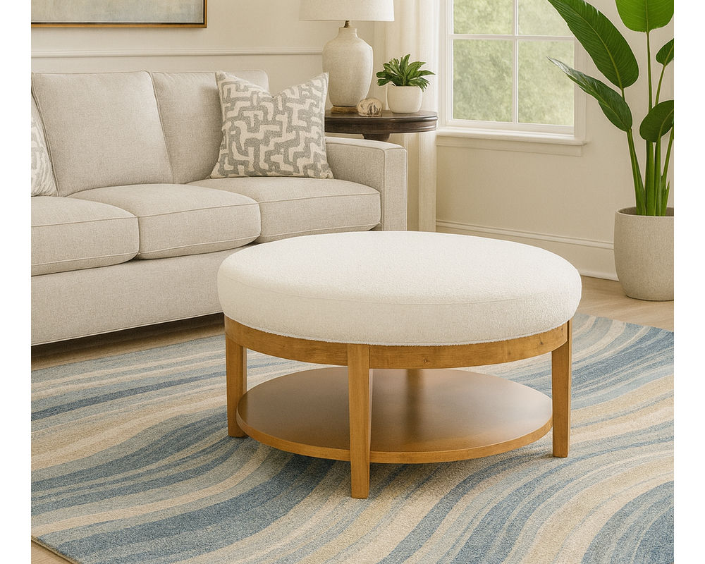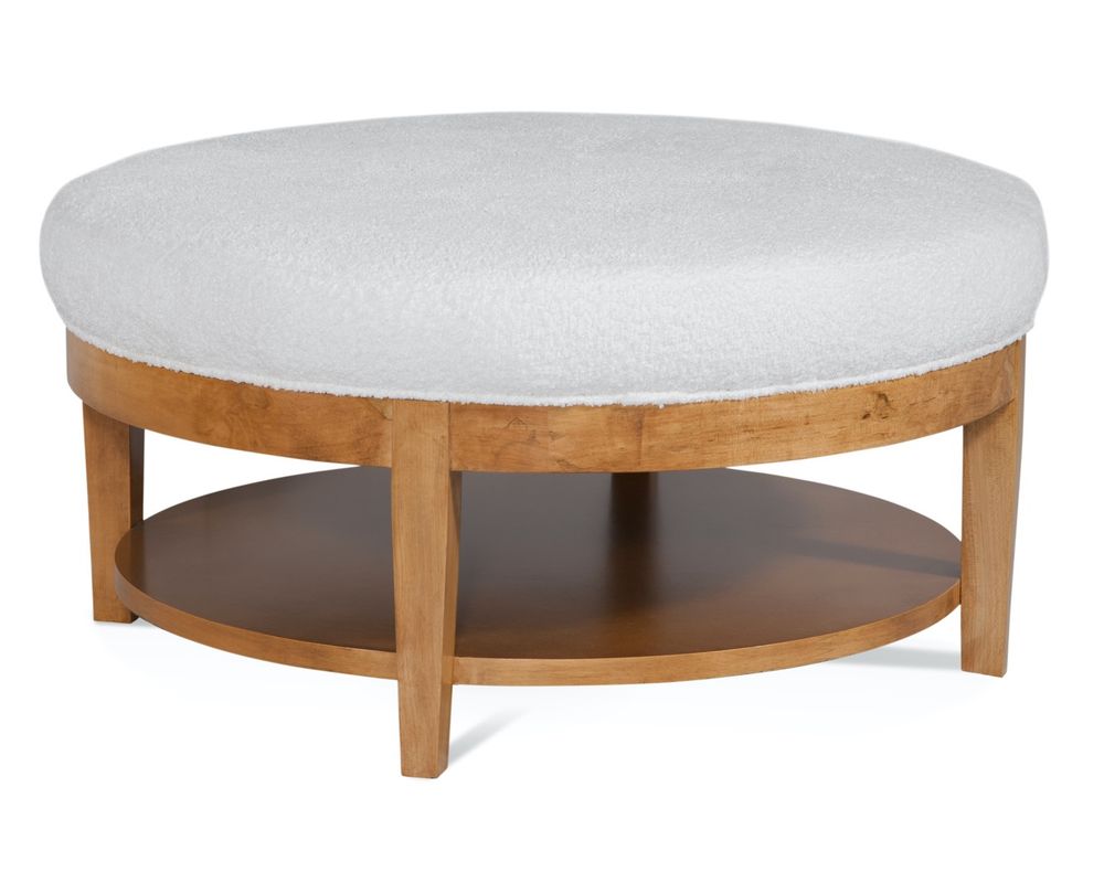 Blending modern versatility with timeless craftsmanship, the Midtown Round Cocktail Ottoman is the perfect centerpiece for your living space. Its round design offers both comfort and functionality, while the lower shelf adds a touch of practicality for storage or display. With 65 fabric options and 28 wood stain finishes, you can customize it to perfectly fit your home’s style.