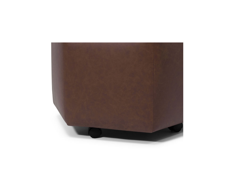 Take a break with the Mingle 27” x 27” hexagonal ottoman that features single top stitching for a clean and tailored finish. Hexagonal ottoman includes has over 200 fabrics and leathers to select from. All Palliser frames are constructed from engineered wood products, hardwood or softwood; joints are pinned and glued for uniformity and strength.