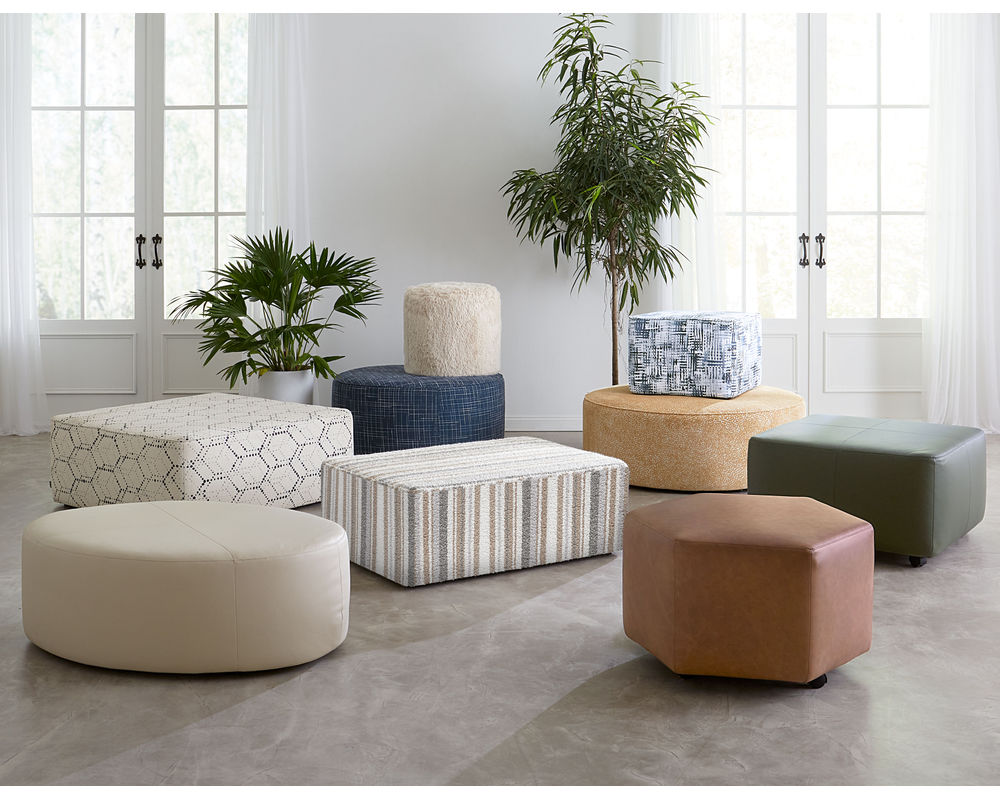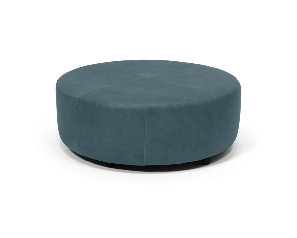 Take a break with the Mingle 45" round large ottoman that features single top stitching for a clean and tailored finish. Round ottoman has over 200 fabrics and leathers to select from. All Palliser frames are constructed from engineered wood products, hardwood or softwood; joints are pinned and glued for uniformity and strength.