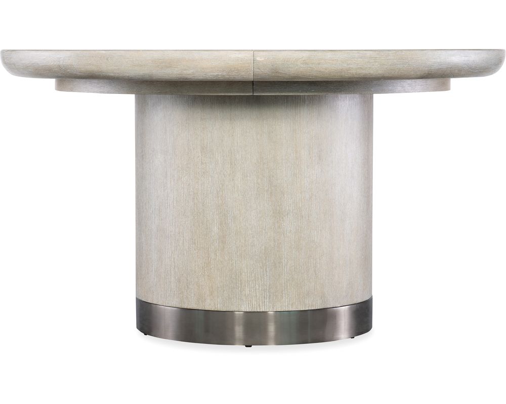Crafted with precision and attention to detail, the Modern Mood Round Dining Table features metal banding accents on the base in a warm pewter finish. This adds a touch of industrial charm to the overall design, making it a versatile addition to any decor style.