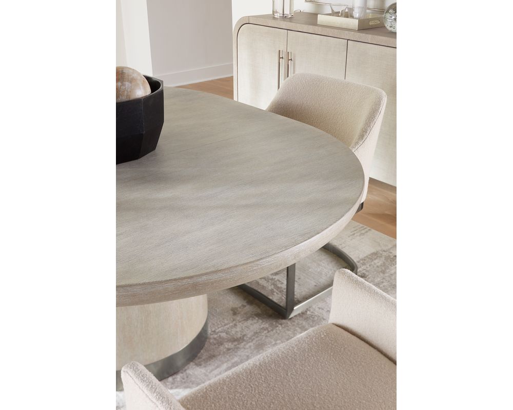 Unbound by geographical design, Modern Mood presents itself as an evolution of design choices, spanning various decades and design movements while maintaining an unmistakably modern aesthetic that transcends time. The 90-piece collection includes a bedroom, dining room, home office, accent, and occasional items characterized by substantive forms with soft architectural details. Elevated materials and brushed metal accents in a warm pewter finish are evident throughout the collection, including metal banding and edging and marble and glass accents. Crafted with flat-cut quartered oak veneer with wire-brushed detailing, Modern Mood is presented in two finishes: Mink and Diamond. Delivering a dark, earthy brown with notes of black, Mink provides a timeless aesthetic. With its crystal-like alabaster and pewter hues, the Diamond finish delivers a soft sophistication, evoking a sense of luxury and refinement.