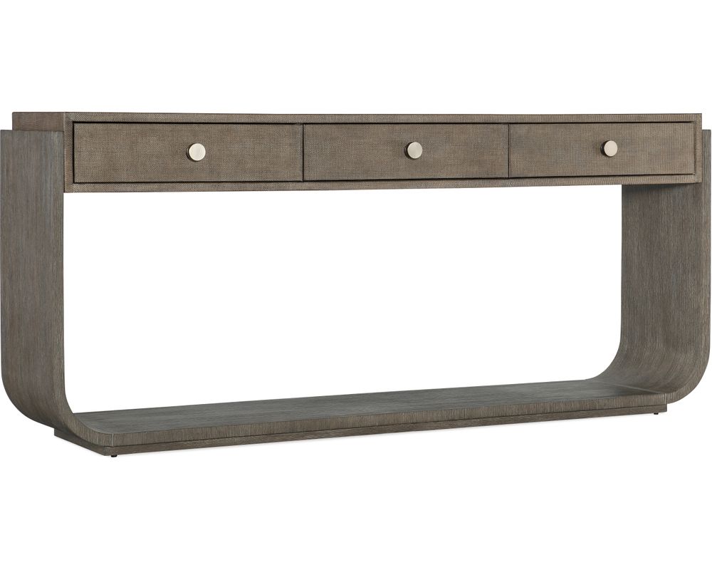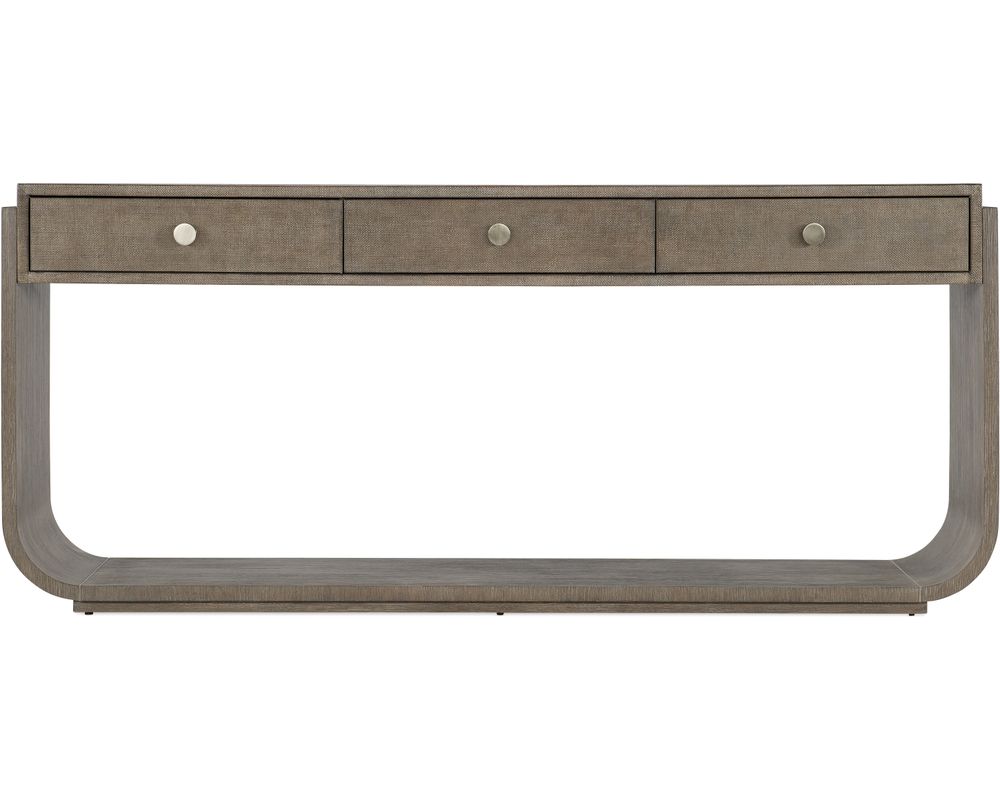 From Sofas and Sectionals.com: Elevate your home decor with the Modern Mood Drawer Console Table. This elegant piece features a timeless, symmetrical design, making it the perfect addition to any living space. The table boasts a narrow rectangle shape with rounded sides, creating a soft and sophisticated appearance.