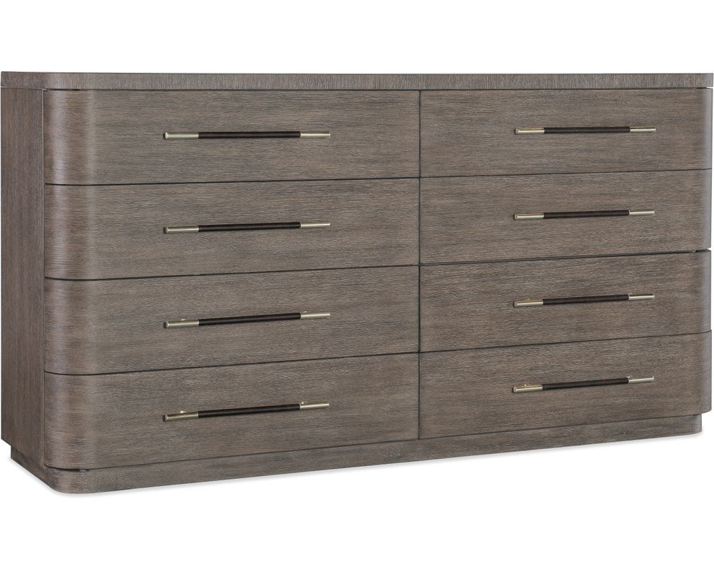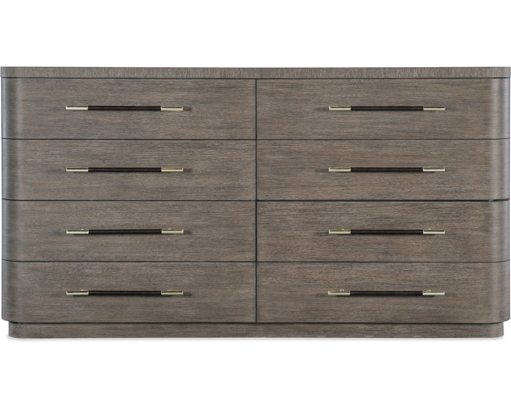 From Sofas and Sectionals.com: The Modern Mood 8 Drawer Dresser is the perfect addition to any modern bedroom. With its sleek and sophisticated design, this dresser is a stunning statement piece that will elevate the overall look of your room. Made with a luxurious combination of materials, it exudes elegance and class.