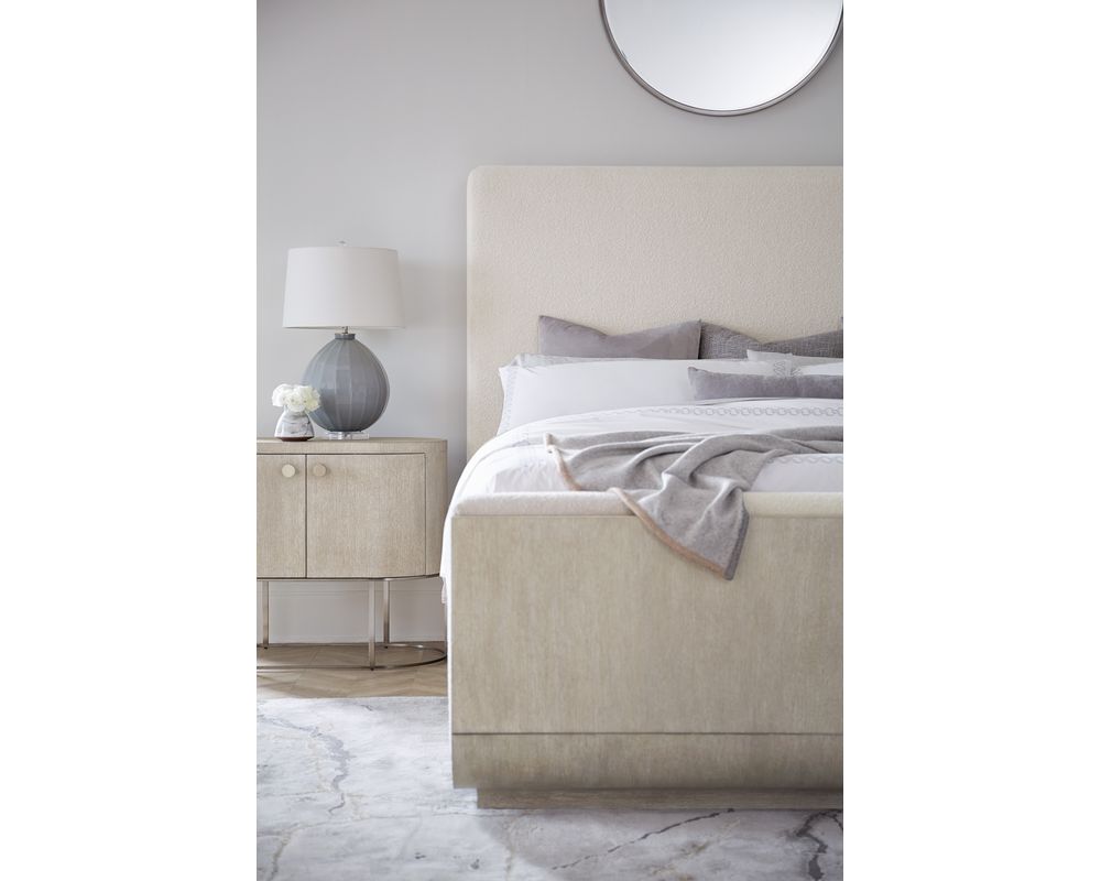 The headboard, footboard, and rails are all upholstered in a luxurious Inverness Natural fabric, adding a soft and comfortable touch to the overall design. The fabric's neutral color allows for easy integration into any existing bedroom decor.