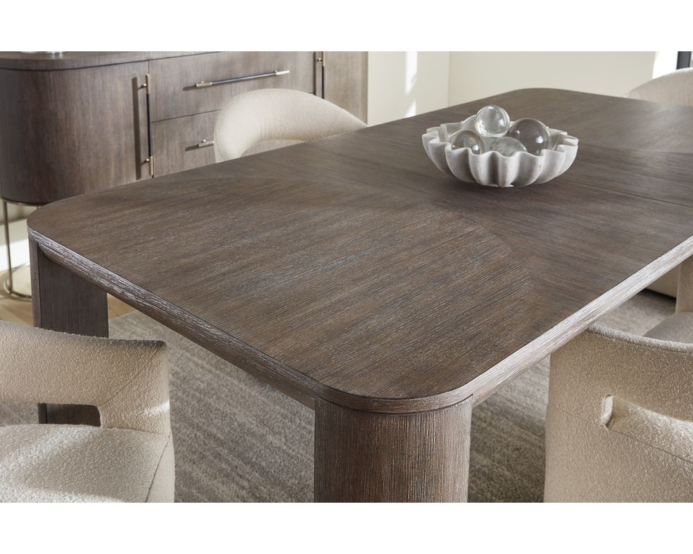 Unbound by geographical design, Modern Mood presents itself as an evolution of design choices, spanning various decades and design movements while maintaining an unmistakably modern aesthetic that transcends time. The 90-piece collection includes a bedroom, dining room, home office, accent, and occasional items characterized by substantive forms with soft architectural details. Elevated materials and brushed metal accents in a warm pewter finish are evident throughout the collection, including metal banding and edging and marble and glass accents. Crafted with flat-cut quartered oak veneer with wire-brushed detailing, Modern Mood is presented in two finishes: Mink and Diamond. Delivering a dark, earthy brown with notes of black, Mink provides a timeless aesthetic. With its crystal-like alabaster and pewter hues, the Diamond finish delivers a soft sophistication, evoking a sense of luxury and refinement.