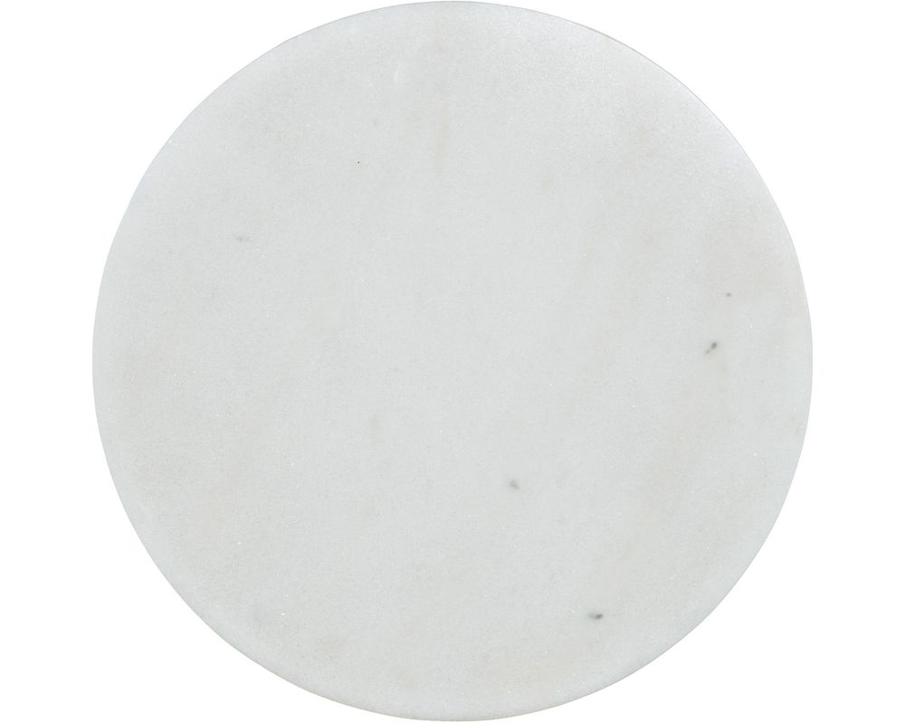 The table features a round white marble top, adding a touch of luxury to the overall design. The marble is known for its durability and natural beauty, making it a perfect choice for a functional yet stylish accent table. The smooth surface of the marble top is ideal for displaying decor items or holding your morning cup of coffee.