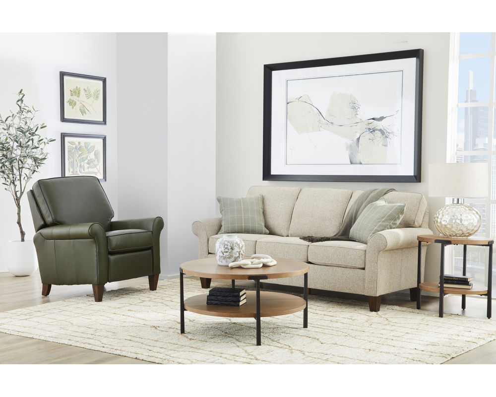 The Monroe 144SLSR Leather Chair and a Half is the perfect addition to any home. This chair is designed to bring effortless, casual style and extreme comfort to your living room. The chair features a classic transitional style with its padded roll arm, exposed block leg, and comfortable seat. Matching leather sofa and loveseat is available.