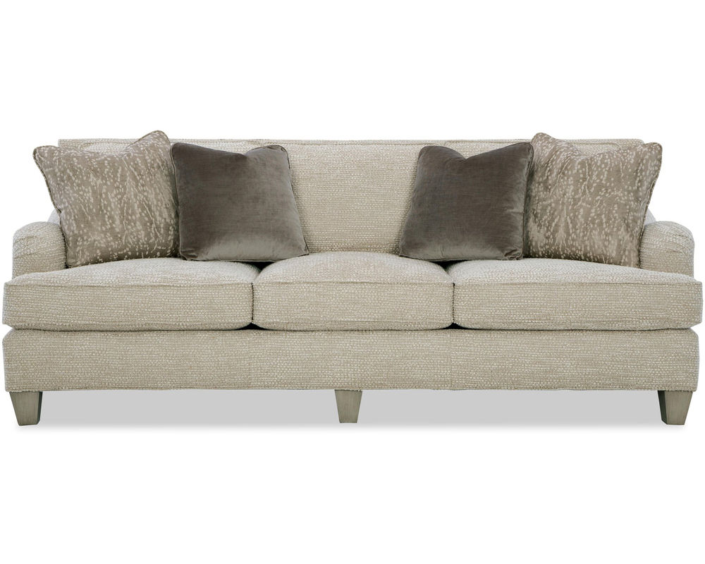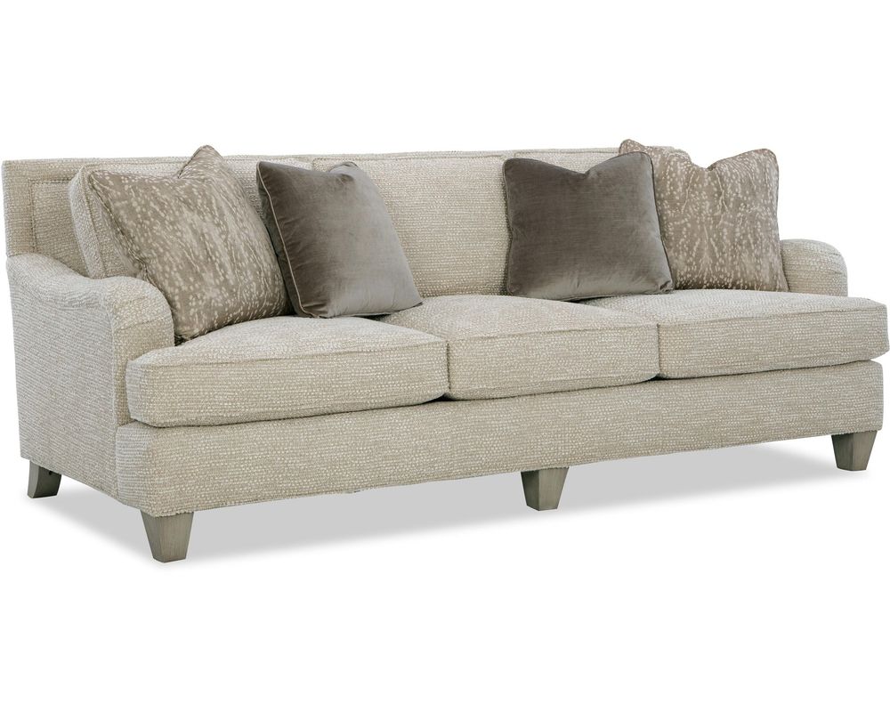 Measuring 95" in length, this generously scaled sofa boasts classic English arms, adding a touch of sophistication to its overall look. The picture-frame style welted back not only adds to its elegant design but also provides extra support for your back. The low tapered legs give the sofa a modern and sleek appearance, making it a perfect fit for any contemporary home.