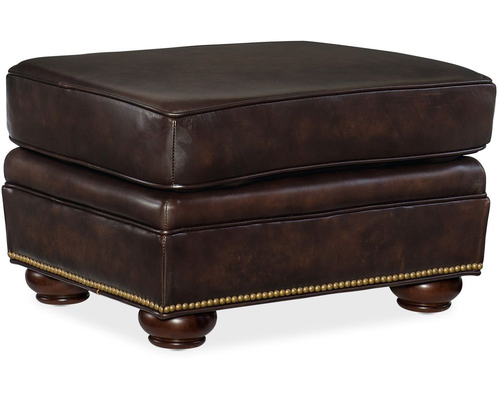 Montgomery Stationary Leather Sofa (83") Classic sophistication meets lasting comfort in the Montgomery Leather Sofa from Hooker Furniture. Wrapped in rich, top-grain leather, this stately piece features traditional design elements like rolled arms, turned wood feet, and nailhead trim. Perfect for refined living spaces, the Montgomery sofa offers plush seating with a timeless silhouette that never goes out of style.