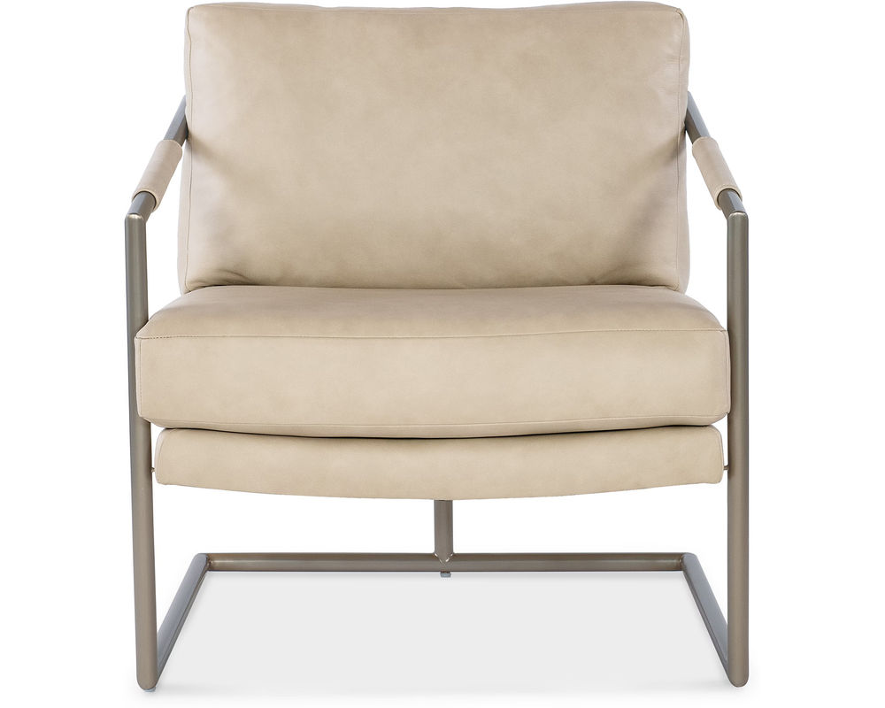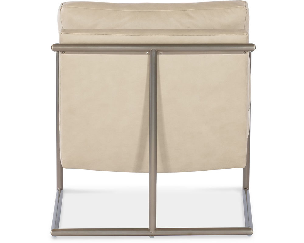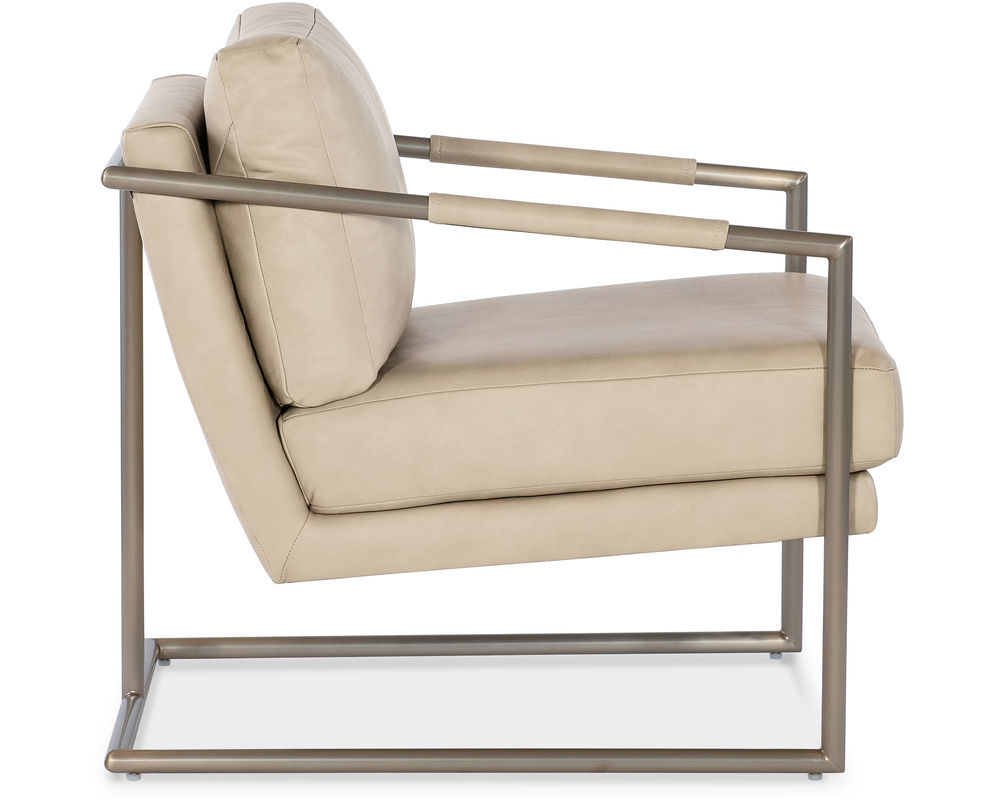 Moody Metal Chair Elevate your space with the striking, architectural design of the Moody Metal Chair from Hooker Furniture. Featuring a sleek stainless steel frame and leather-wrapped arms in Aline Stonewash semi-aniline leather, this chair perfectly blends industrial edge with modern sophistication. Whether used as an accent in your living room or office, the Moody Chair makes a bold statement of style and refinement.