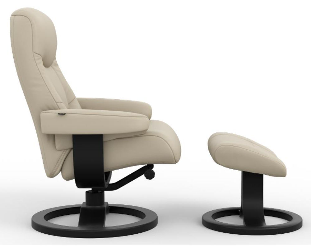 Introducing the Mudal R Swivel Recliner and Ottoman from Fjords, the epitome of relaxation and style. This ergonomic recliner, designed with your comfort in mind, is a must-have for any living room. Crafted with top-grain leather, it offers a perfect blend of durability and luxury. But what truly sets it apart is its unique ability to adjust to your individual resting position, making it the perfect recliner for reading, watching TV, or even surfing the internet.