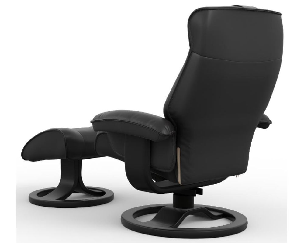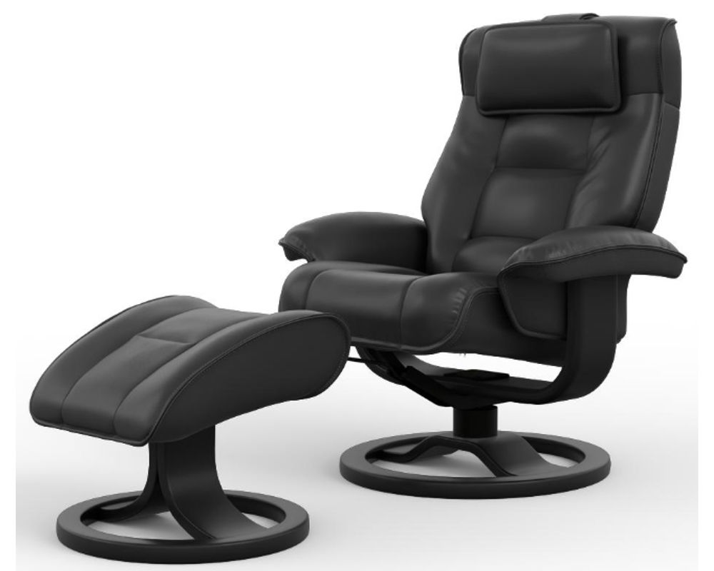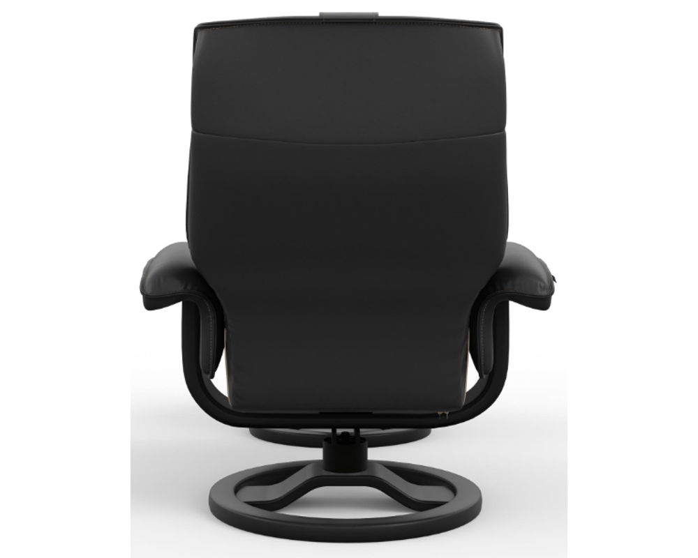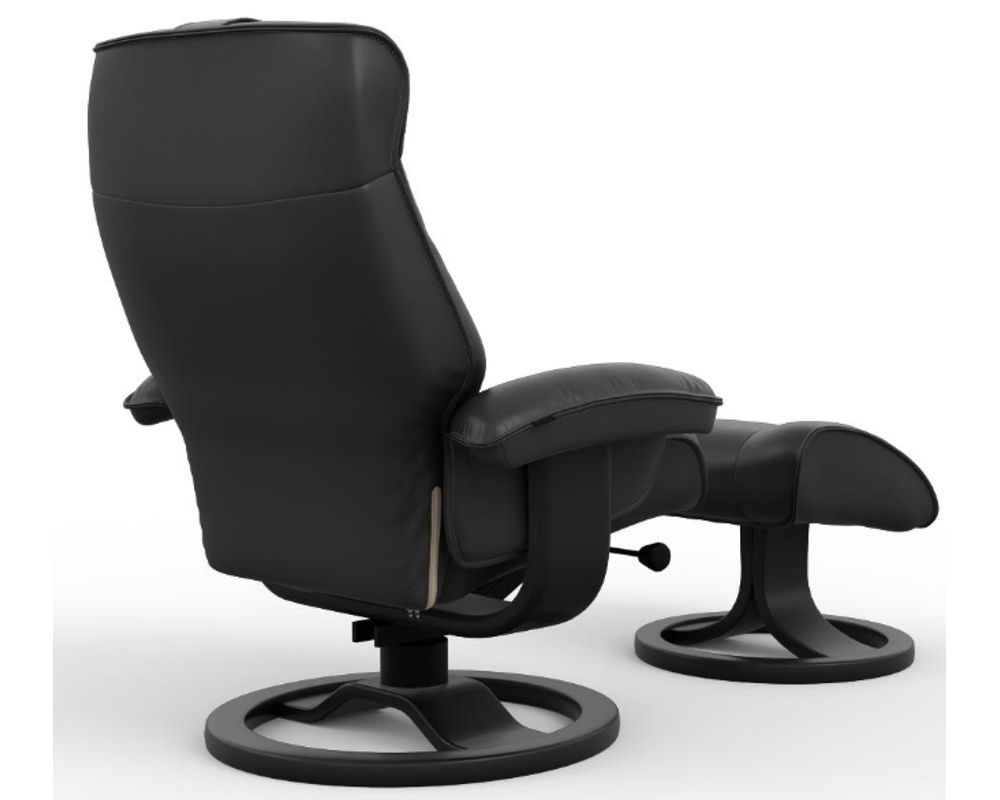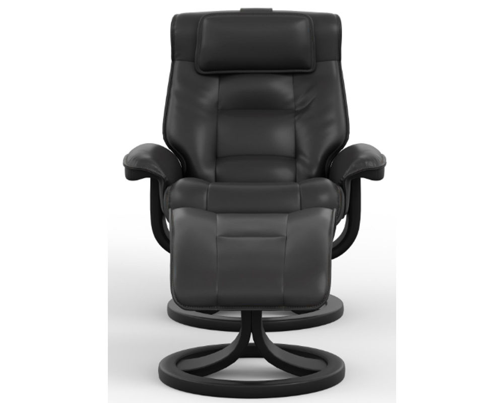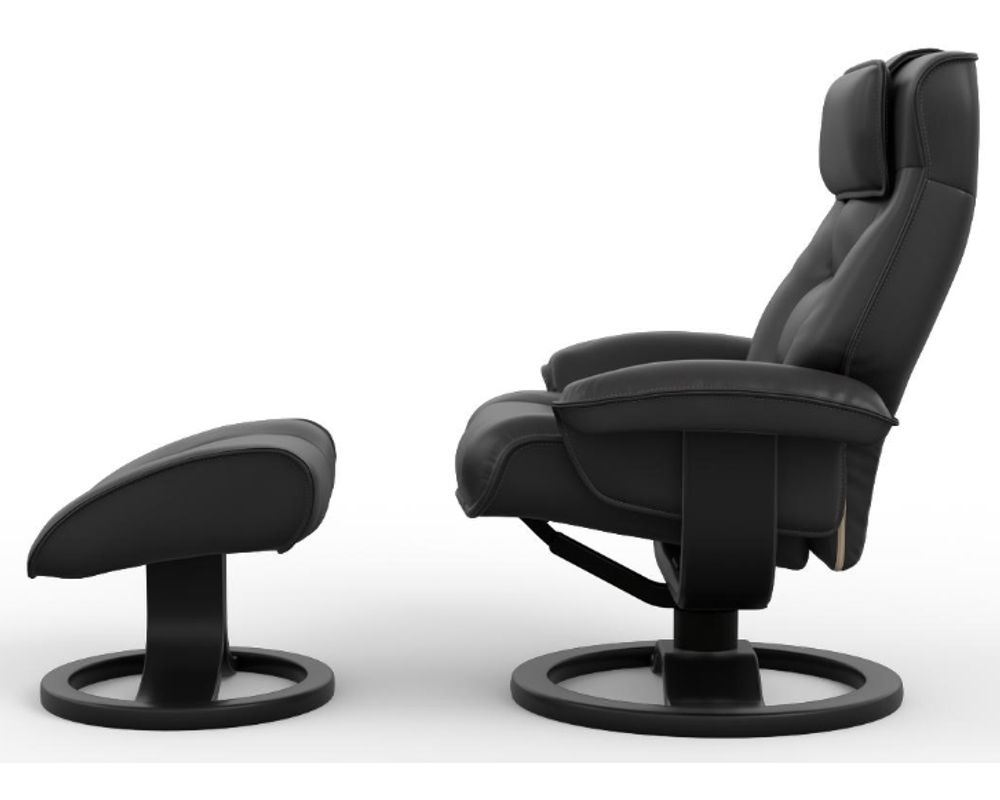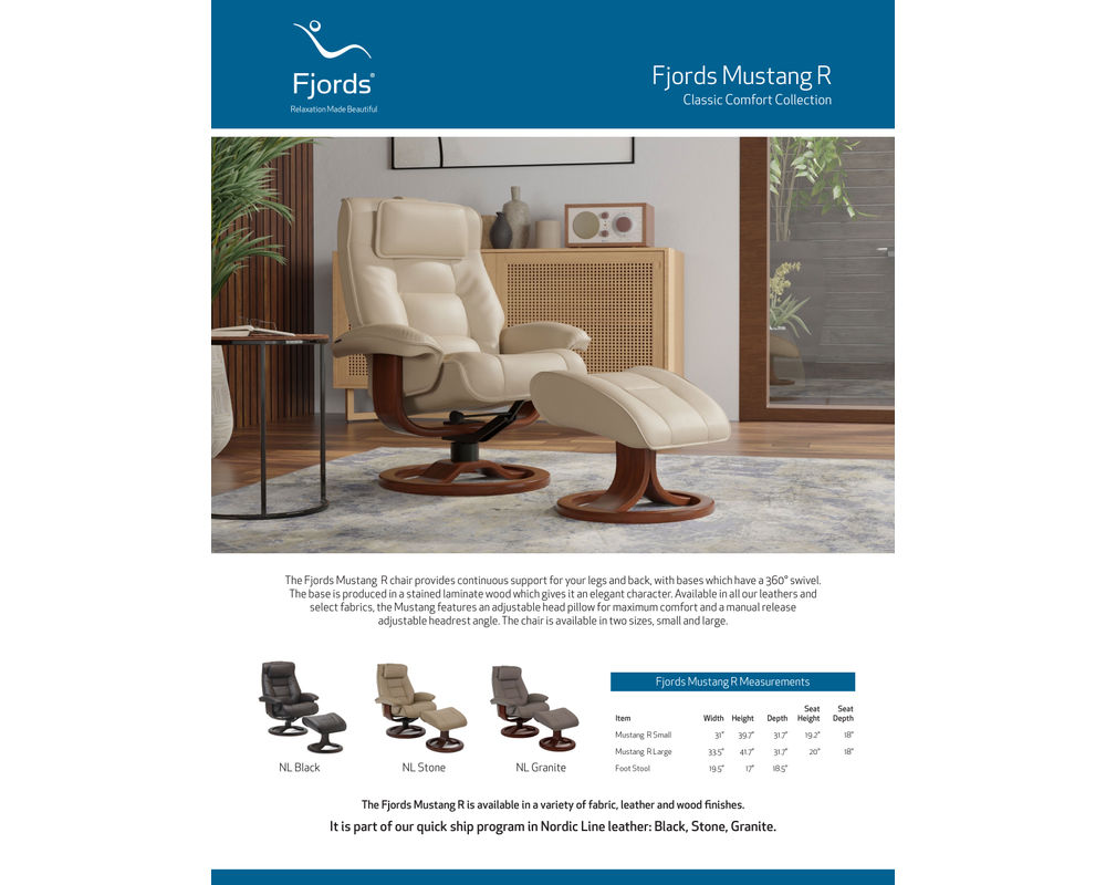 Introducing the Mustang R Swivel Recliner from Fjords, a unique blend of comfort and style. This ergonomic recliner, equipped with the innovative Fjords Active Release System, automatically adjusts to your desired neck angle while you recline, ensuring continuous support and maximum relaxation for your body.