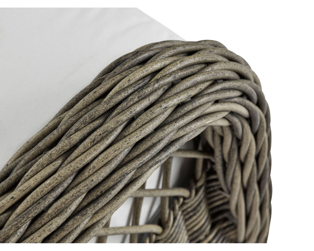 • Constructed of weather-resistant, high UV polyethylene synthetic fiber is hand-woven over premium aluminum powder-coated frame. • Cushion is box welt-less with top-stitch tailoring and feature the exclusive LANE VENTURE Ultimate WeatherMaster drain-through technology for soft seating and durability of a drainable all-weather fiber cushion plus, the comfort and longevity of spring coil seating. • This item is available in all LANE VENTURE stain and mildew-resistant solution dyed fabrics. • Available in finish 170 French Grey as shown.