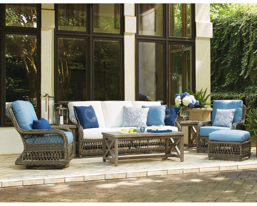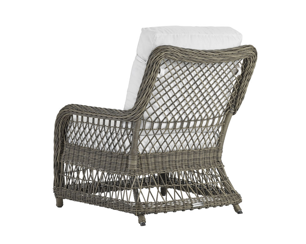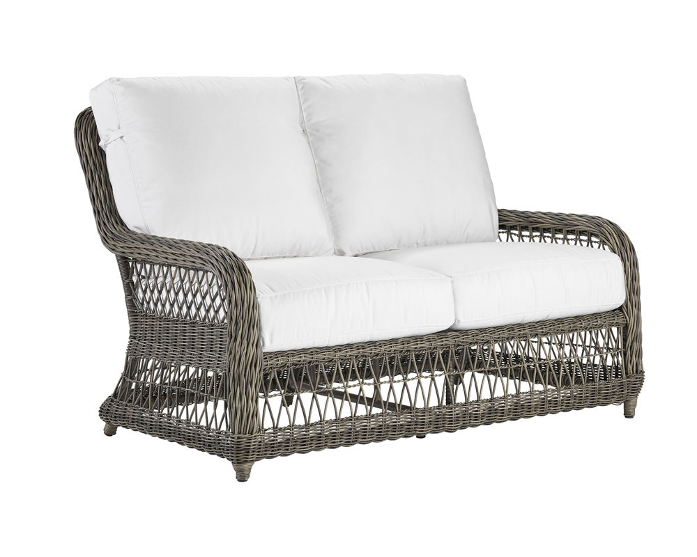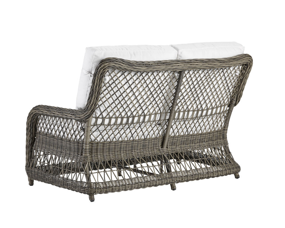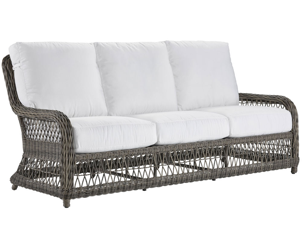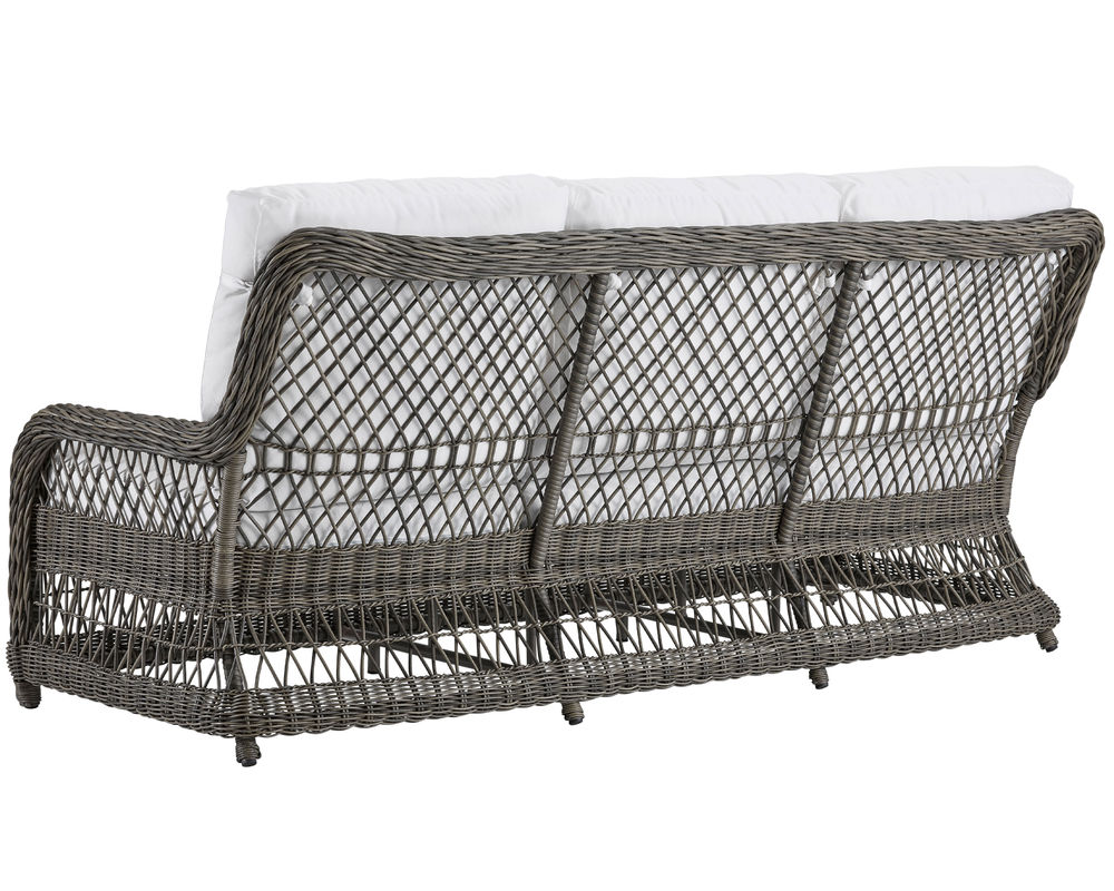 An "X" trellis motif gives a light and airy feeling to the classic wicker design of our Mystic Harbor sofa. Featuring our luxurious and plush WeatherMaster ultimate outdoor cushion, you'll want to sink in and unwind in the unsurpassed comfort. Varying shades of warm French Grey all-weather wicker are hand-woven around the gentle curves of a premium quality aluminum frame and will endure any type of weather. Superior upholstery details feature cushions with welt-less box borders and French seaming.