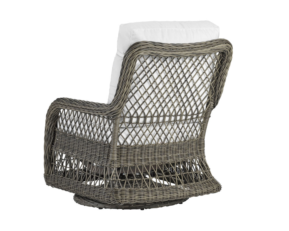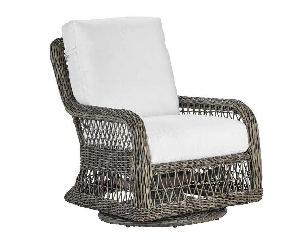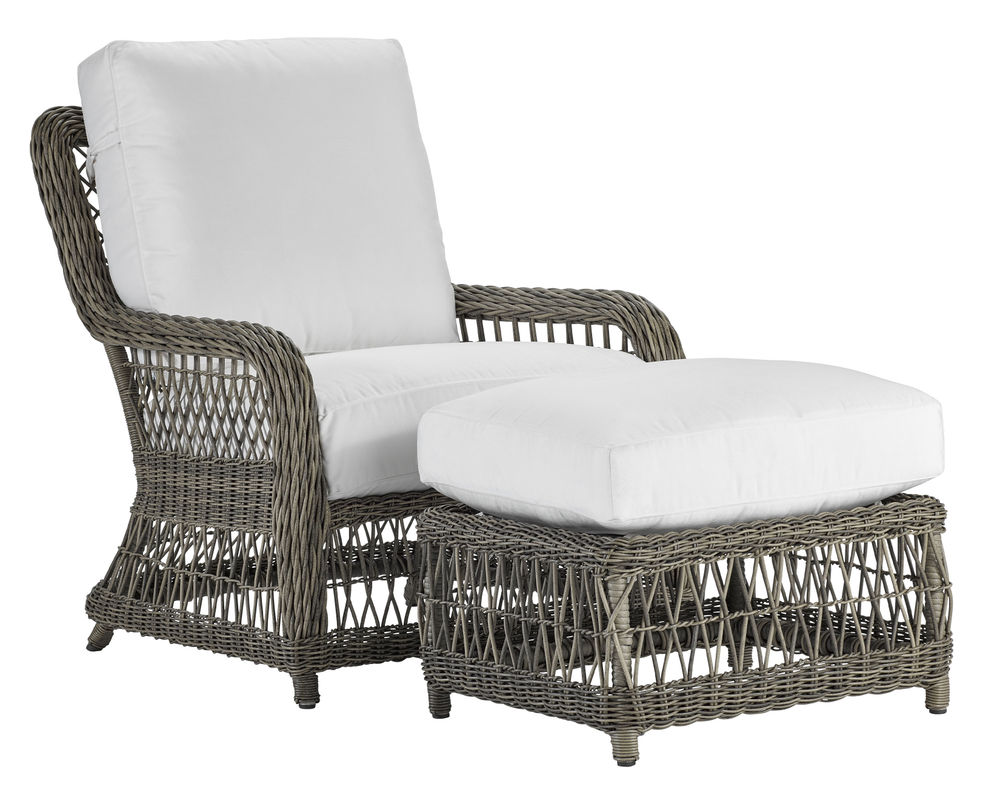 • Constructed of weather-resistant, high UV polyethylene synthetic fiber is hand-woven over premium aluminum powder-coated frame." • Cushions feature box welt-less with top-stitch tailoring and the exclusive LANE VENTURE Ultimate WeatherMaster drain-through technology for soft seating and durability of a drainable all-weather fiber cushion plus, the comfort and longevity of spring coil seating. • This item is available in all LANE VENTURE stain and mildew-resistant solution dyed fabrics. • Available in finish 170 French Grey as shown.