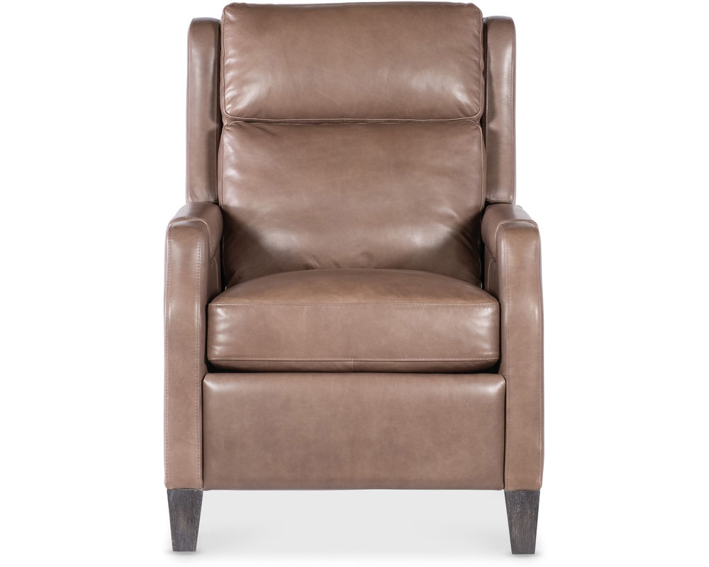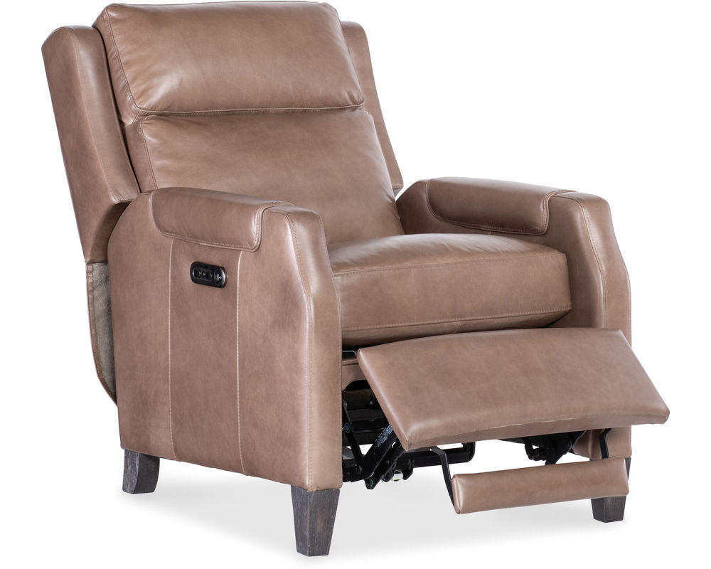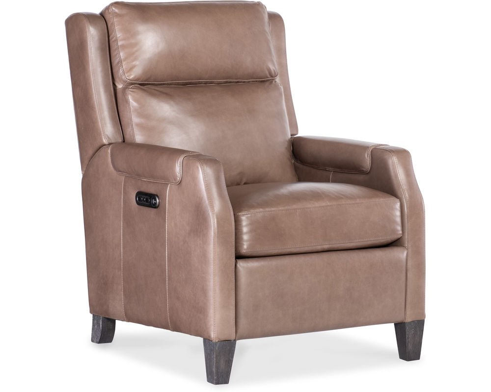 Nelson Power Headrest Power Reclining Wing Chair Experience unparalleled comfort wrapped in timeless style with the Nelson Power Recliner from Hooker Furniture. Upholstered in rich Light Mocha semi-aniline leather, this transitional wing chair features a power headrest and smooth reclining mechanism for personalized relaxation. Elegant design elements like padded slope arms, tapered wood legs, and a dark wood finish create a sophisticated silhouette that complements a wide range of interiors. With a built-in USB port, the Nelson Recliner seamlessly blends classic design with modern convenience.