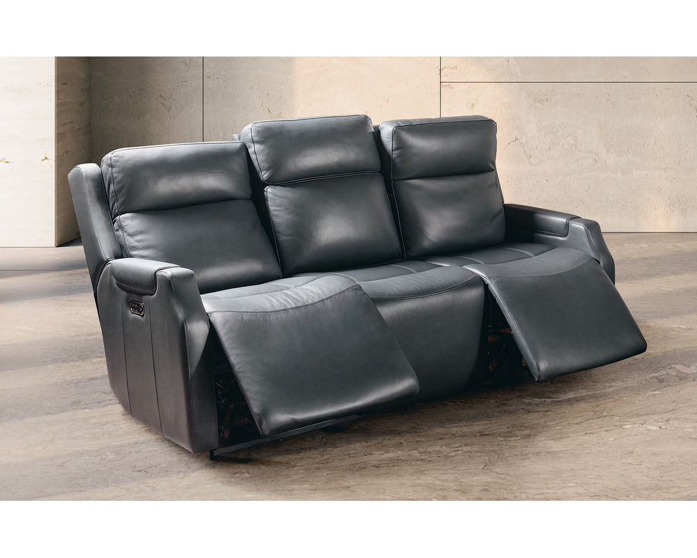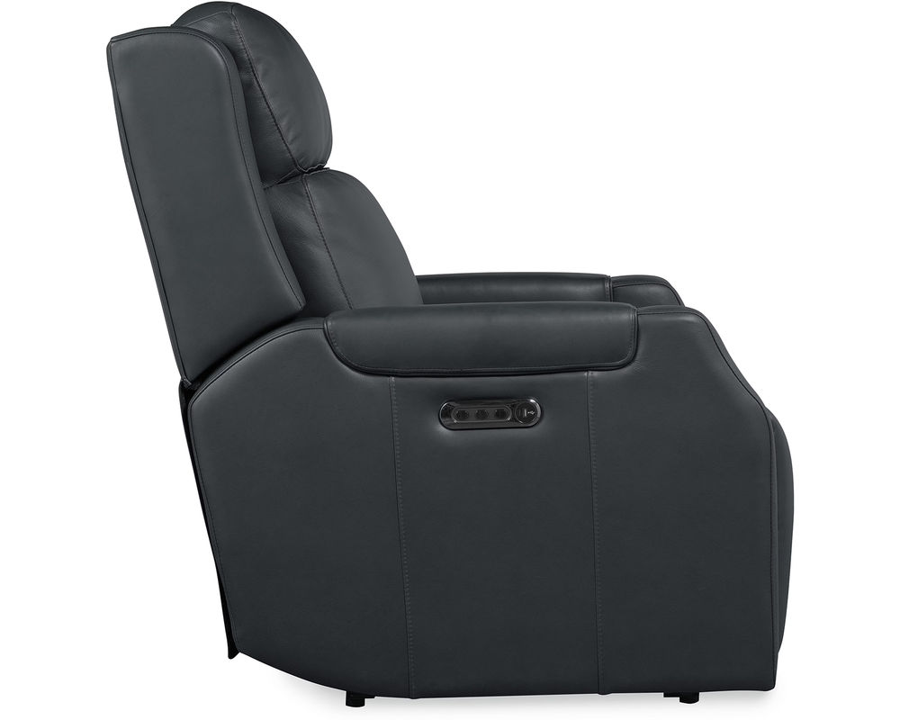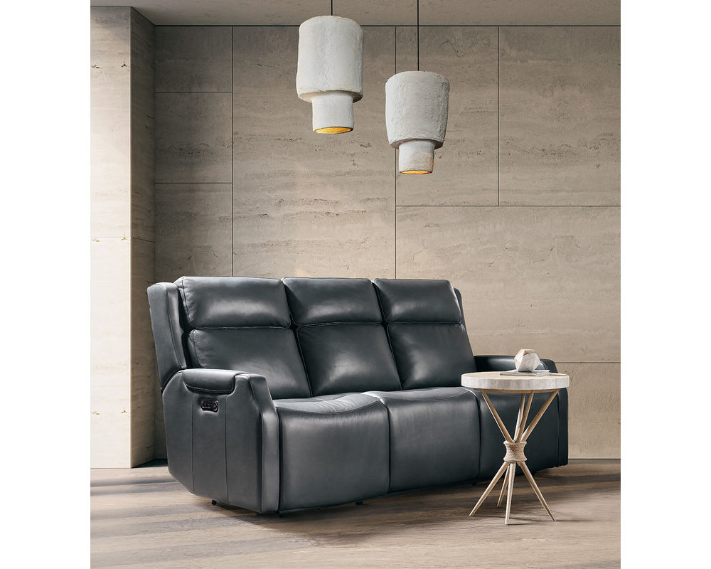 Refined Comfort in Every Position Indulge in the perfect balance of style and support with the Nelson Zero Gravity Triple Power Recliner by Hooker Furniture. Upholstered in luxurious Salvo Denim Finished Top Grain Leather, this sleek recliner is engineered for comfort with triple power functionality—power recline, power lumbar, and power headrest. Designed with clean lines and a contemporary silhouette, it features a zero gravity reclining position that promotes wellness and deep relaxation. Built-in USB and USB-C ports make this recliner as functional as it is beautiful.