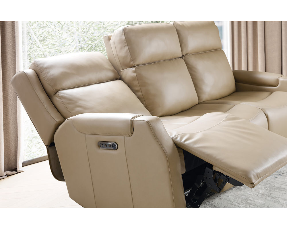 Experience the Ultimate in Modern Comfort Elevate your relaxation with the Nelson Zero Gravity Triple Power Reclining Sofa by Hooker Furniture. Featuring a sleek, contemporary silhouette, this sofa is wrapped in luxurious Salvo Beige Finished Top Grain Leather that adds a refined touch to any living space. Designed with triple power functionality—power recline, power lumbar, and power headrest—this piece offers personalized comfort at the touch of a button. With built-in USB and USB-C charging ports, it combines high-end comfort with modern convenience for today's lifestyles.