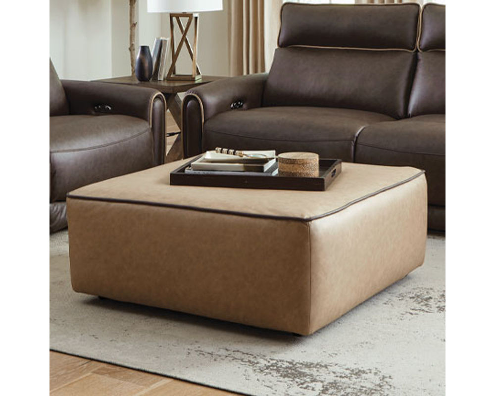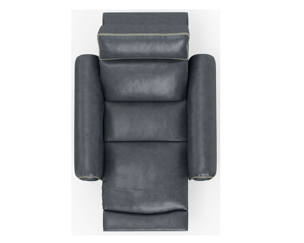 The upscale modern styling of the Nico recliner is sure to impress. Its sleek design is accentuated by contrasting tan welting that outlines the double pillow back and front of the reclining arms. The rounded arms and pad over the chaise add a touch of elegance, making this recliner a statement piece in any room.