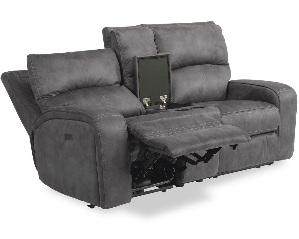 Enjoy ergonomic comfort designed for two with the Nirvana Power Reclining Loveseat with Power Headrests. Both sitters can find the perfect position for relaxation using easy-to-access power controls on both sides of the loveseat. The controls independently adjust the headrests and recline, so you can stay comfy while watching your favorite show. Conveniently charge devices without ever needing to get up with a USB port built in the power controls. Ergonomic features, including pillow-back cushions and curved arms with a tailored pad overlay reduce pressure on your body. And refined design details such as bold, puckered stitching and thick, welted trim give the loveseat an elevated look. Our patented Flexsteel DualFlex Spring System™ ensures quality that will last, along with a mix of firmness and flexibility as you sit. Choose from two durable and easy to clean polyester fabric upholstery options to make this loveseat a stylish centerpiece in your home.