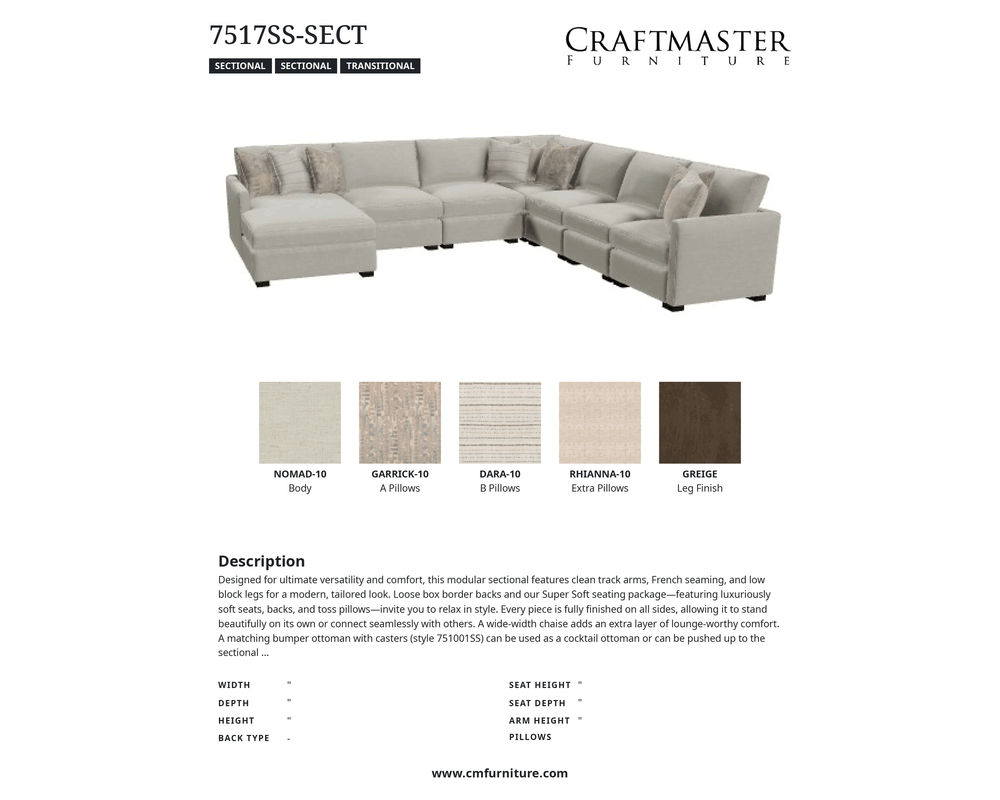 NOTE: Due to dye lot variations from fabric suppliers, Craftmaster Furniture cannot guarantee dye lot matches unless products are purchased simultaneously.