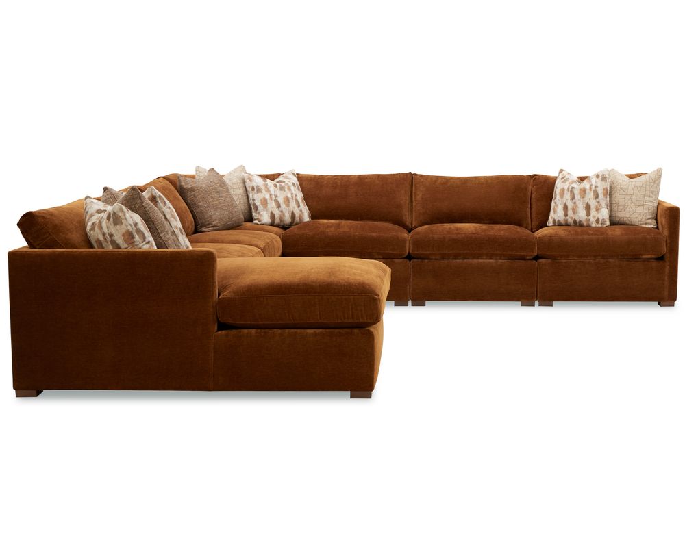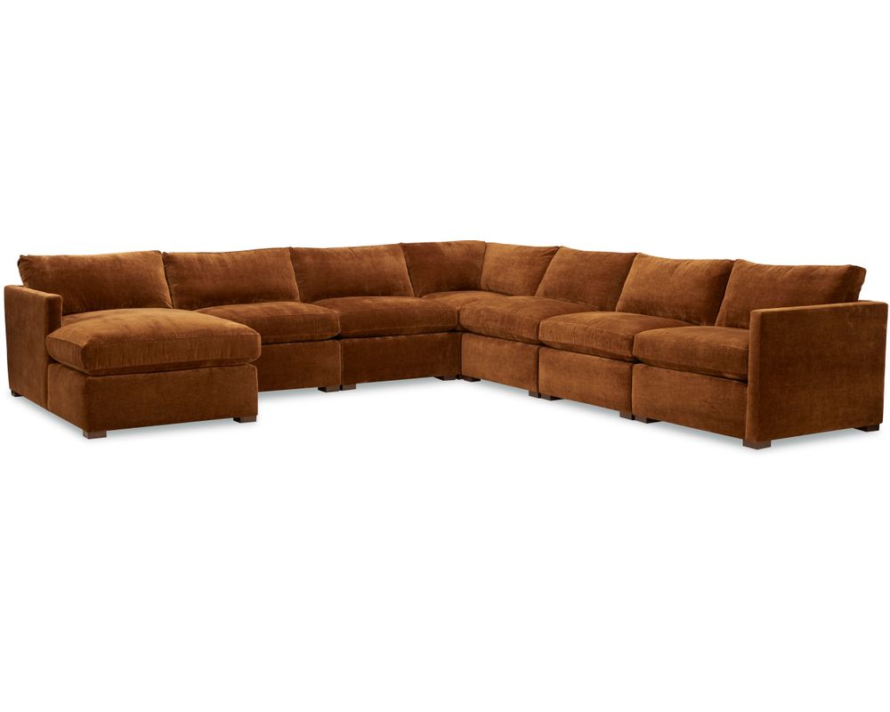 But the customization doesn't stop there. With over 100 performance fabrics and 10 wood finishes to choose from, you can genuinely make this sectional your own. Whether you prefer a bold statement or a subtle touch, there is a fabric and finish combination that will suit your style.