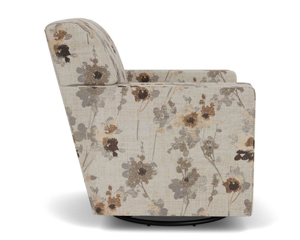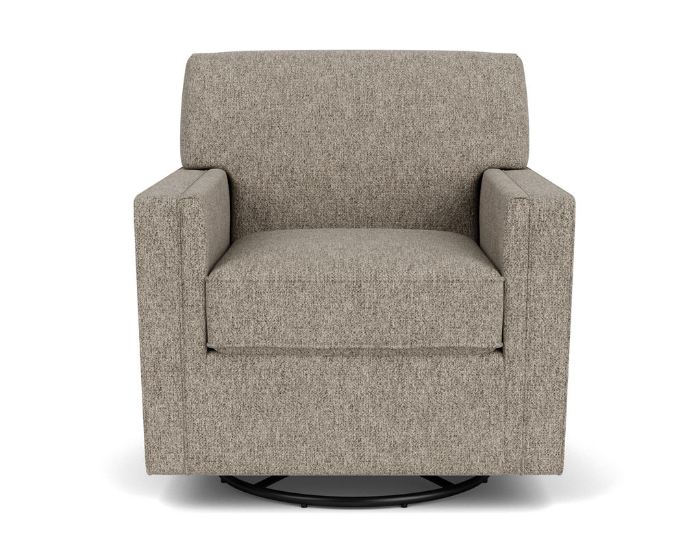 Introducing the Flexsteel Nora 5890 Swivel Chair – the perfect blend of comfort and classic style. With its tightly padded back, refined track arms, and square tapered wood legs, you can create a comfortable and tailored silhouette for any room. The soft, reversible box seat cushions are accentuated with an elegant welt trim detail, while two accent pillows in a coordinating fabric complete the look. Modestly scaled, Nora's streamlined design lends a sense of openness to any size space. Whether you're looking to sit back and relax or engage in conversation, the Flexsteel Nora 5890 Swivel Chair is the perfect addition to your living space.