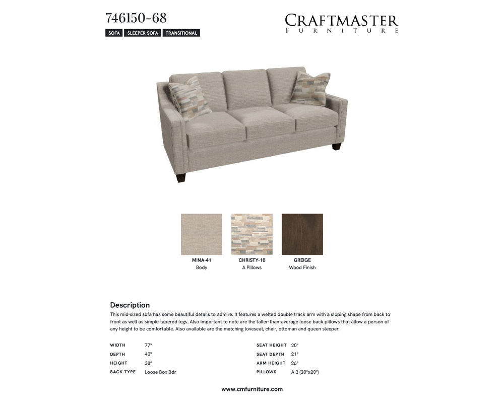 NOTE: Due to dye lot variations from fabric suppliers, Craftmaster Furniture cannot guarantee dye lot matches unless products are purchased simultaneously.