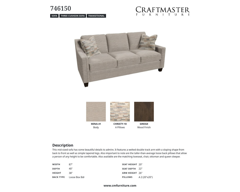 NOTE: Due to dye lot variations from fabric suppliers, Craftmaster Furniture cannot guarantee dye lot matches unless products are purchased simultaneously.