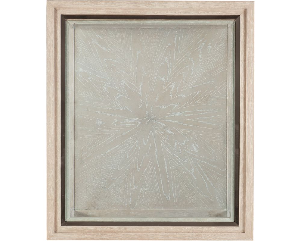 But what truly sets this end table apart is the unique sunburst veneer-patterned bottom. This eye-catching design element adds a touch of sophistication and creates a beautiful contrast against the light wood finish. Speaking of finishes, this end table is available in a stunning sandstone finish. Combining cathedral and quartered oak veneers, light wire brushing, and transparent and opaque stains creates a serene and calming finish. To top it off, a silver metal accent is on the top for an added pop of style.