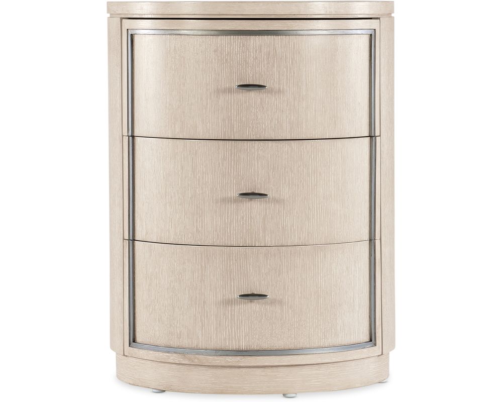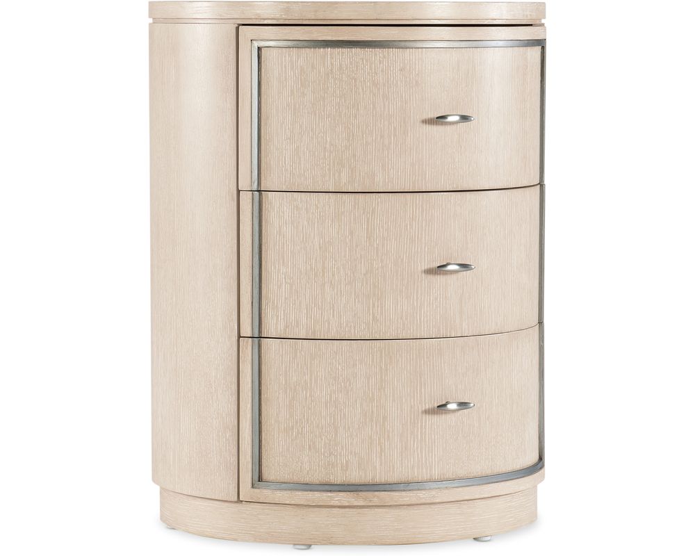 The Nouveau Chic Round Nightstand seamlessly blends transitional style with modern functionality, making it a must-have for any bedroom.