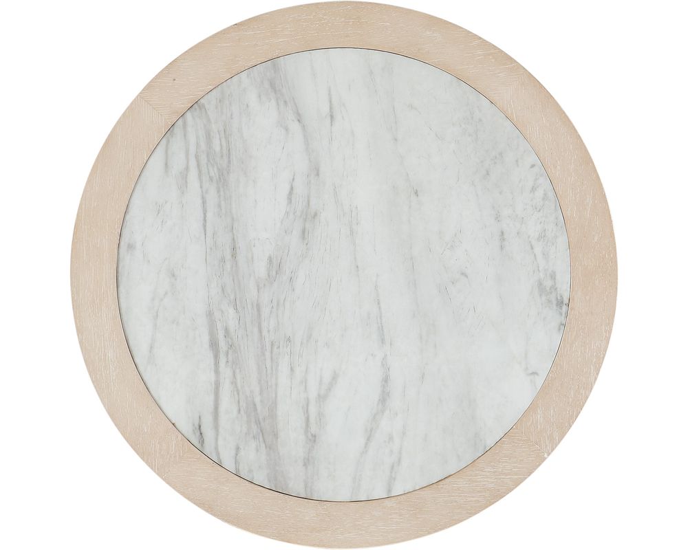 From Sofas and Sectionals.com: Introducing the Nouveau Chic Round Nightstand, a stylish and functional addition to any bedroom. This nightstand features a unique round shape that adds a touch of elegance to your space. The nightstand's top boasts a beautiful marble inset, adding a luxurious touch to the overall design.