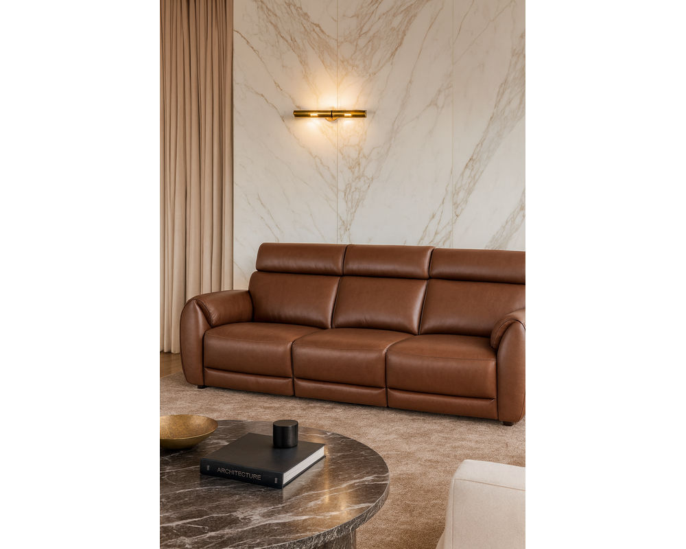 Available in top-grain leather or premium fabric, and crafted with precision at the Natuzzi Design Center in Puglia, the Nuvia Reclining Sofa transforms everyday relaxation into an elevated Italian experience.