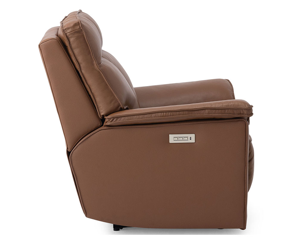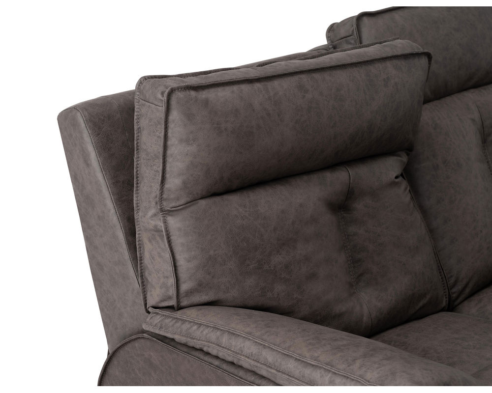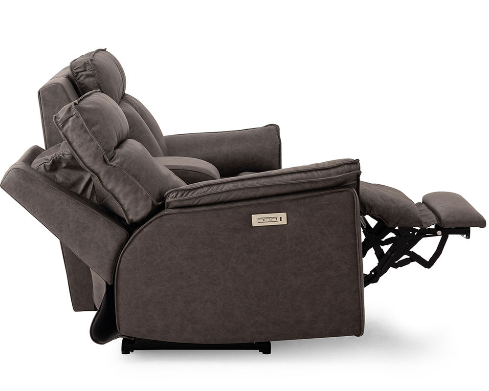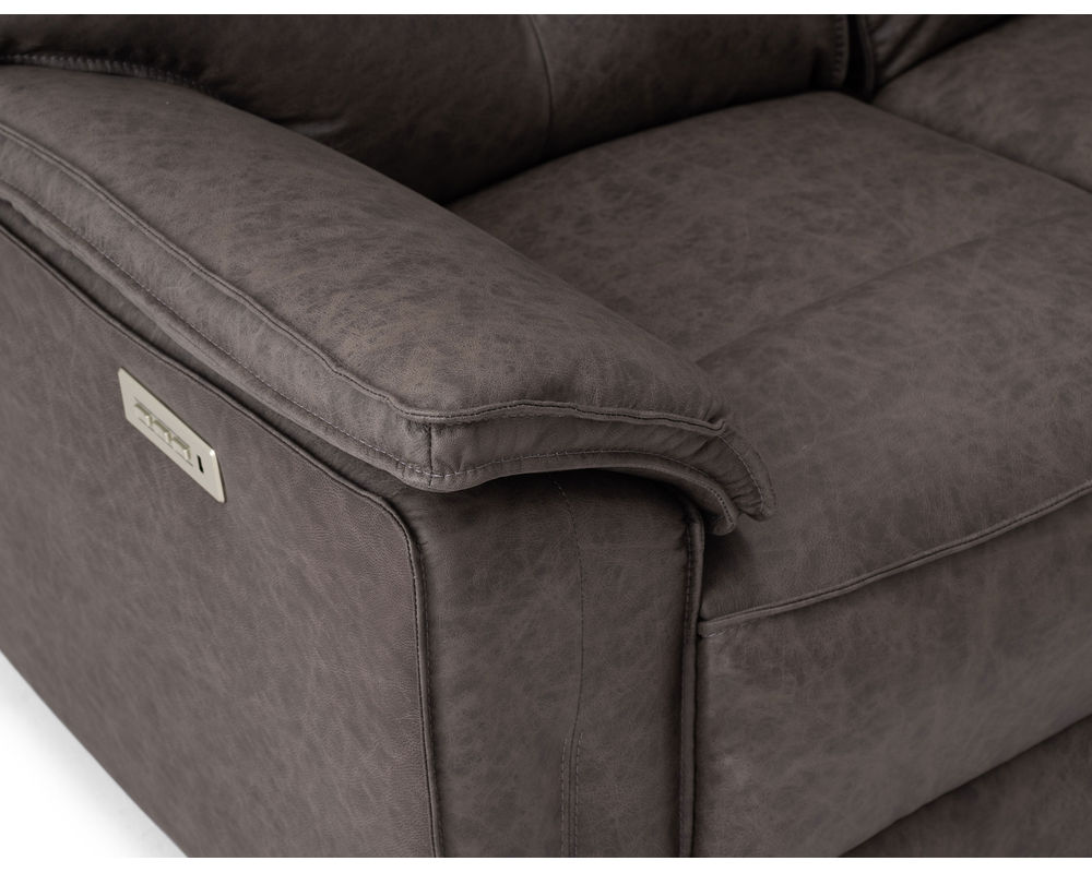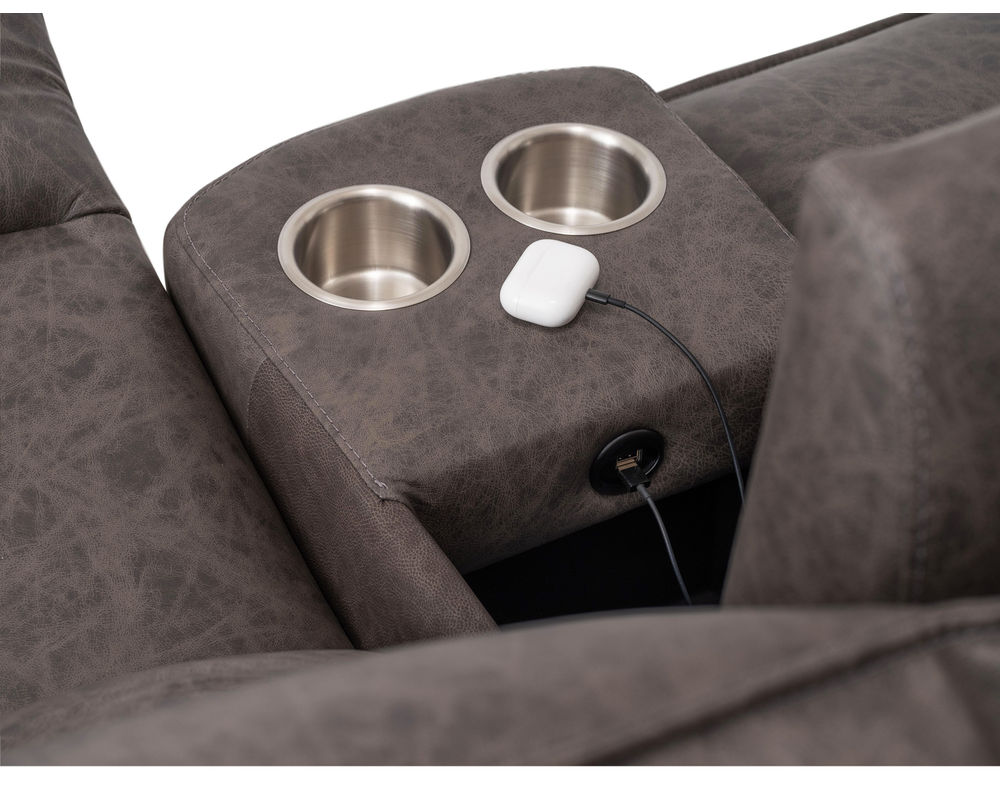 • Power recline and power headrests operated by a brushed metal power switch with integrated USB charging